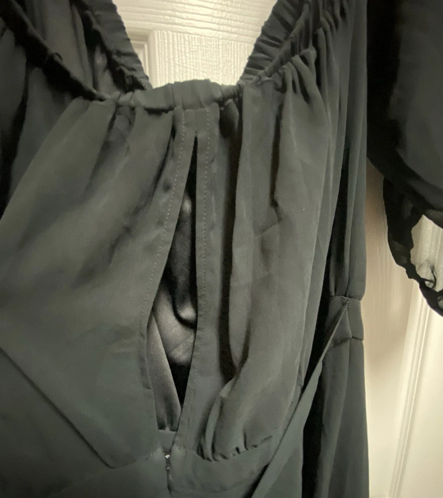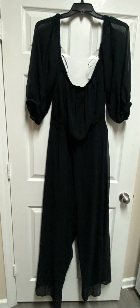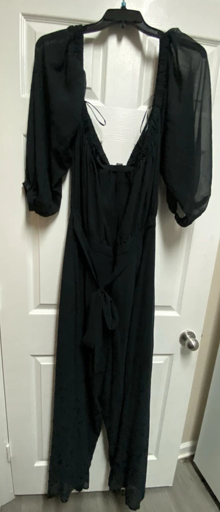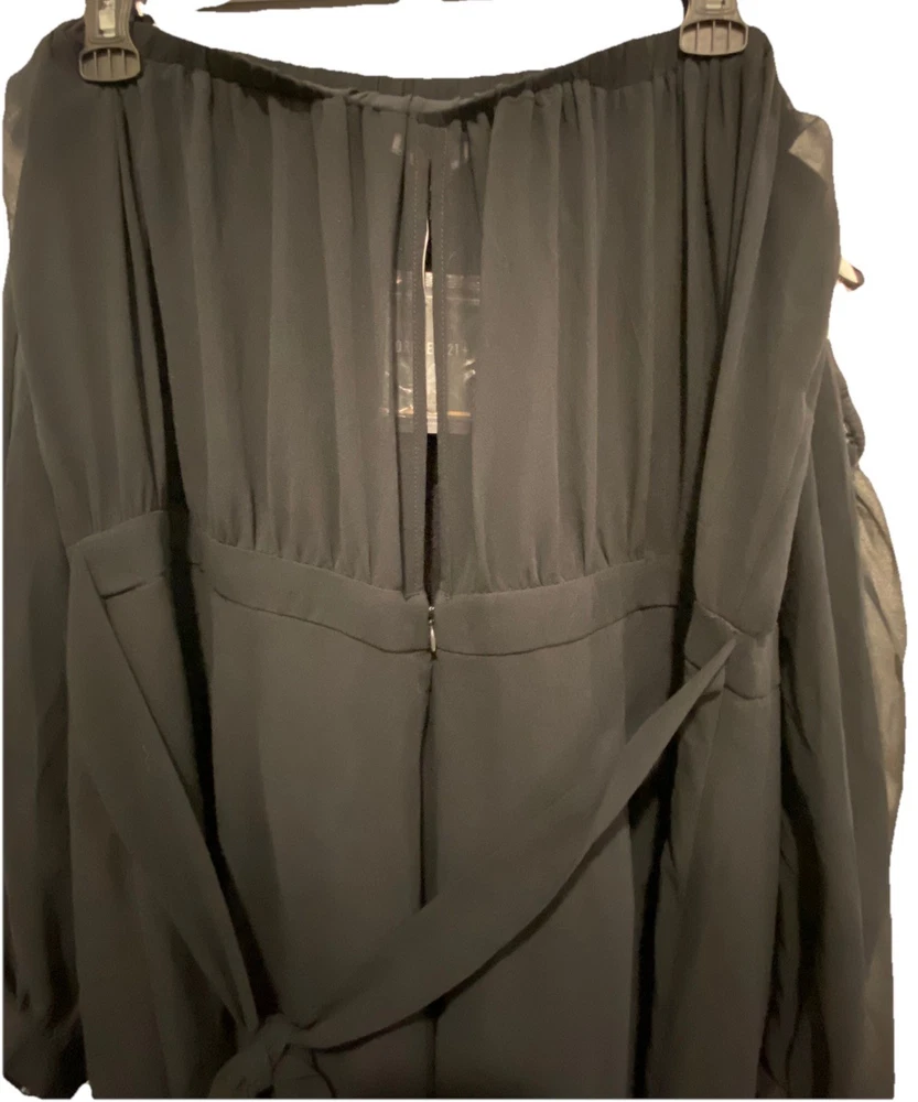 Stylish and flowy off the shoulder black jumpsuit from Forever 21+ featuring a flattering wide leg silhouette and lightweight fabric. Perfect for casual wear, vacation, or dressing up. • Size: 3X (Plus Size) • Color: Black • Brand: Forever 21+ • Wide leg design • Sheer long sleeves • Cinched waist for flattering fit • Tie back detail • Lightweight, comfortable fabric Great pre-owned condition. No major flaws noted. Please see photos for full details. ⸻ 📊 Item Specifics • Brand: Forever 21+ • Size Type: Plus • Size: 3X • Type: Jumpsuit • Style: Wide-Leg • Color: Black • Department: Women • Pattern: Solid • Sleeve Length: Long Sleeve • Features: Lightweight, Tie Back, Sheer Sleeves • Occasion: Casual, Travel, Party boho jumpsuit, plus size outfit, flowy jumpsuit, wide leg romper, festival outfit, evening jumpsuit, vacation outfit