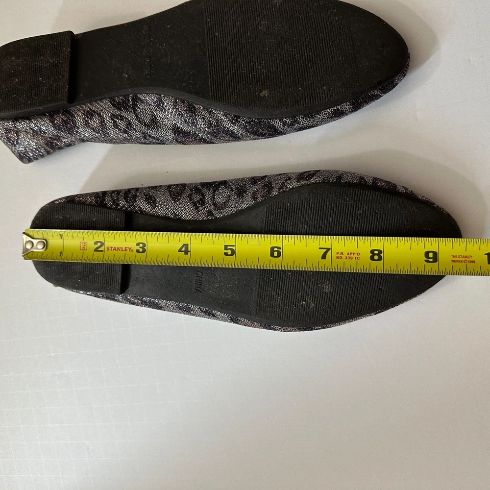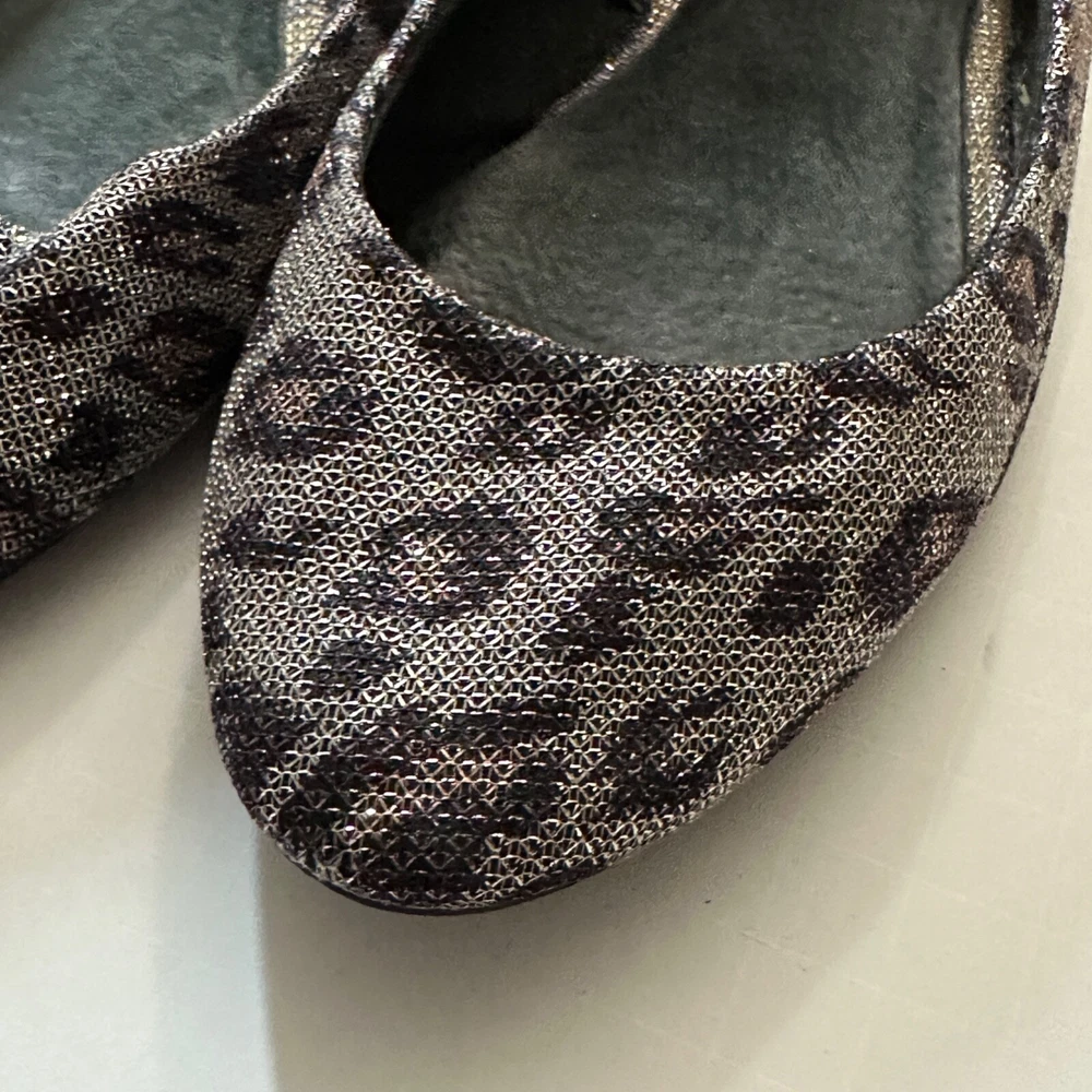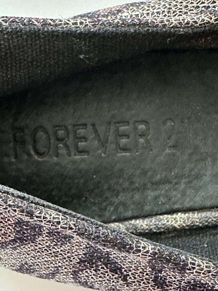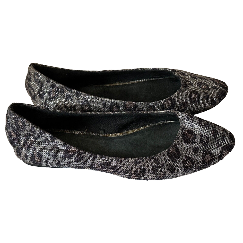 All items have been cleaned per eBay standards & policies. Add a touch of wildness to your shoe collection with these leopard ballet flats from Forever 21. These comfortable flats feature a metallic finish that will make any outfit pop. Perfect for the woman who wants to make a statement, these flats are made with a polyester upper material and come in a size 7. The unique metal theme of these shoes will make them a perfect addition to any outfit.