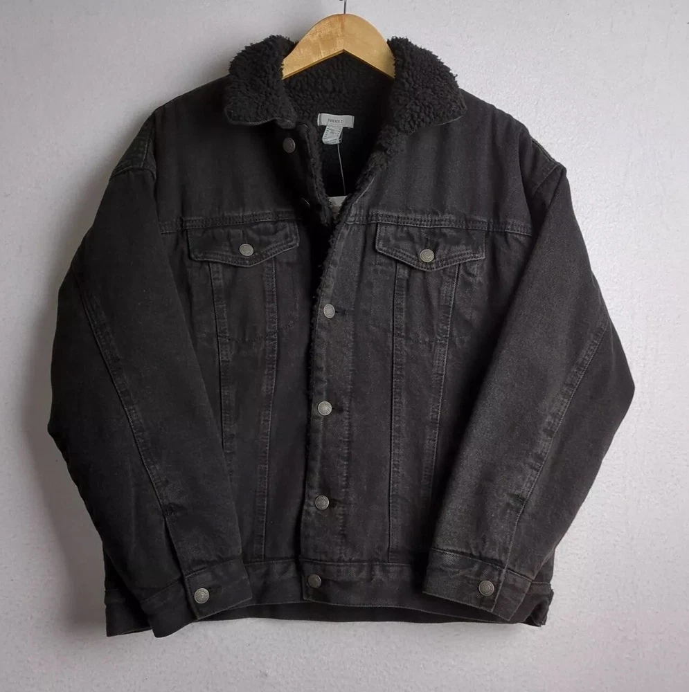 Forever 21 Black Jean Jacket Mens Medium Fleece Lined