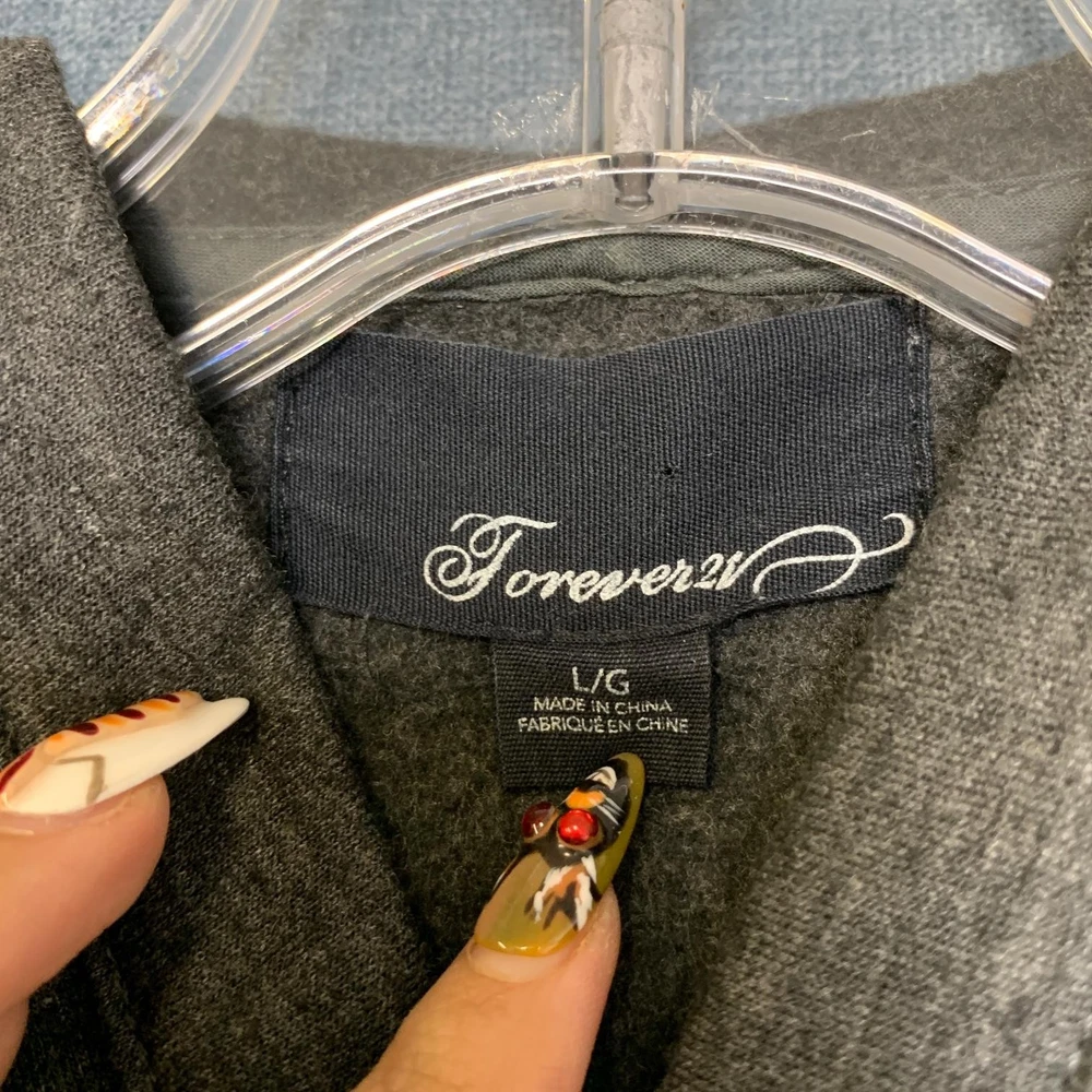 Forever 21 Jacket Womens Large Gray Cotton Fleece Lined Button Front Hooded Product Details Brand: Forever 21 Gender : Womens Color : Gray Type : Jacket Every single item has been washed and cleaned according to eBay policy and standard! Please message me if you have any questions. Listing and template services provided by inkFrog