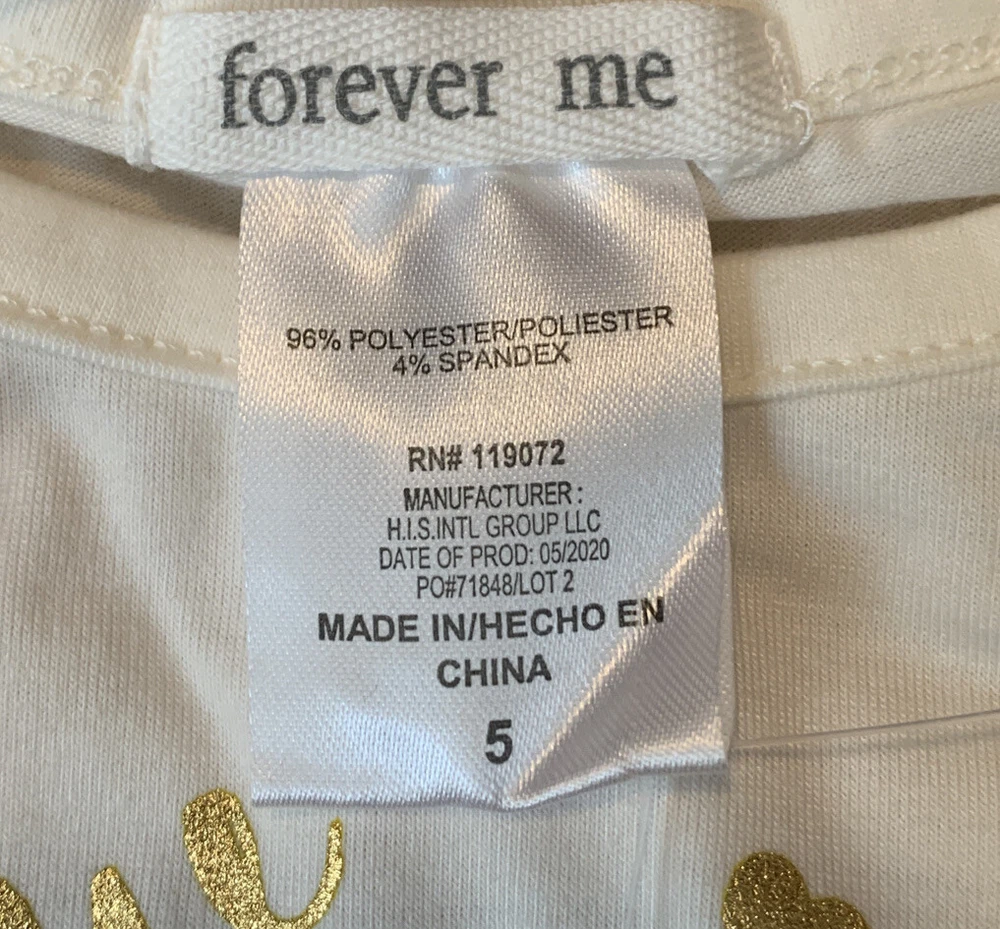 Forever Me girls size 5 legging set. Includes Leggings, Shirt, Vest, hair accessory.