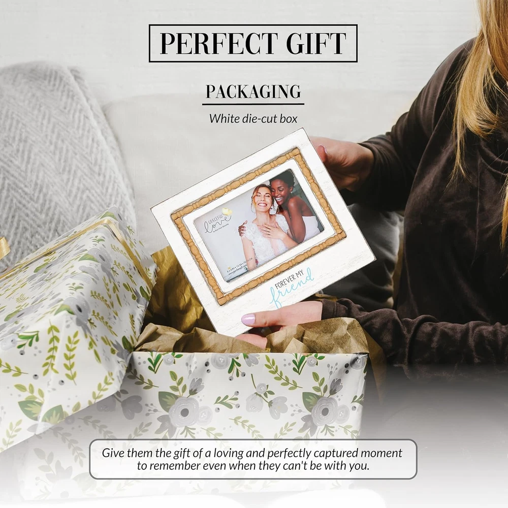 Store New Arrivals Add to Favorite View Feedback Contact - Forever My Friend - MDF Wood Frame with Decorative Trim - Holds 6 X 4-Inch Horizontal Photo, 1 Count, 8.75 X 7.5-Inches Overall in Size,White Description Item model number 77227 Style Modern Number of Items 1 Pattern Textured Country of Origin China Theme Friends Unit Count 1.0 Count Batteries required No Target Audience Adult Frame Material MDF, glass, and plastic. Finish Type Whitewashed Frame Type Single Picture Frame Item Weight 10.4 ounces Occasion Christmas, Birthday Special Feature Holds 4x6 picture, Horizontal picture frame, Features natural wood beaded oval pattern along the inner frame, Whitewashed finish Orientation Horizontal Mounting Type Tabletop Color White Cover Material Glass Global Trade Identification Number 00664843772274 Shape Rectangular Back Material Type Medium Density Fiberboard Finish types Whitewashed Product Dimensions 8.75"L x 0.5"W Product Care Instructions Wipe with a dry cloth. It is safely packaged in a protective die-cut box. PREMIUM QUALITY: 8.75' long x 7.5" tall vertical easel back rustic whitewashed picture frame holds a horizontal 6" x 4" photograph. The border surrounding the frame is a natural wood beaded oval pattern. The backside is white in color and features four sturdy thick black plastic turn knobs for image . Materials include MDF, glass, and plastic. IN-HOUSE DESIGN: The bottom area has a gray/teal blue "Forever My Friend" screen-printed sentiment. The overall look of the frame is rustic, modern, and whitewashed. PERFECT GIFT: Excellent for any bestie who has blessed your life. Best for birthdays or other holiday celebrations. Give them the gift of a loving and perfectly captured moment to remember even when they can't be with you. A present to hold their cherished moments with their favorite people to display in their home for years to come. CARE INSTRUCTIONS: Wipe with a dry cloth. It is safely packaged in a protective die-cut box. MORE PRODUCTS: We offer thousands of friend-themed items and a wide selection of photo frames to commemorate all sorts of special events. Check out our storefront to satisfy your gifting needs for everyone on your list. This beautiful wood frame is designed by artist Blue Chair Blessing. Frame has a rustic white wash design with a decorative beaded tan trim. The sentiment “Forever My Friend'' is printed onto the center bottom of this elegant yet simple frame. The back is made from thick cardboard-like material and features a hinged easel for displaying on a desk, mantel, nightstand or bookshelf with two metal tabs for photo . Frame comes packaged in a plain white box and measures 8.75” x 7.5” inches. ABOUT US We offer the best prices around on high quality products. Our E-store includes media such as books, movies, music and games while offering electronics, toys, sporting apparel, clothing, tools, general home, garden items and more. SHIPPING We are always working hard to ensure your package arrives as soon as possible. Please understand that some factors like weather, high postal traffic, and the performance of shipping companies are outside of our control. We offer free shipping to the lower 48 states and ship within 2 business days of payment, usually sooner. We do not accept P.O. Boxes. Please provide a physical address. For shipping outside of the continental USA, we only use eBay's Global Shipping Program.The item is shipped to KY and then sent to the rest of the world. International customers are responsible for all duties and taxes. Continue to check out in order to calculate costs for shipping the item to your country. Messages regarding eBay's Global Shipping Program MUST be directed at eBay EXCLUSIVELY. RETURNS We offer a 30-Day Return Policy on items which you are not completely satisfied with. You have the option for a full-refund or an exchange of the item. No returns are available on items shipped outside of the USA. PAYMENT We accept PayPal. CONTACT US This page content is yet to come Please ad us to your favorite seller and visit again later Thank You CUSTOMER SATISFACTION We try our very best to make sure every customer is completely satisfied. If there's a problem, message us! We're happy to help. WE ACCEPT Copyright © 2021 AutoDS. | All Rights Reserved