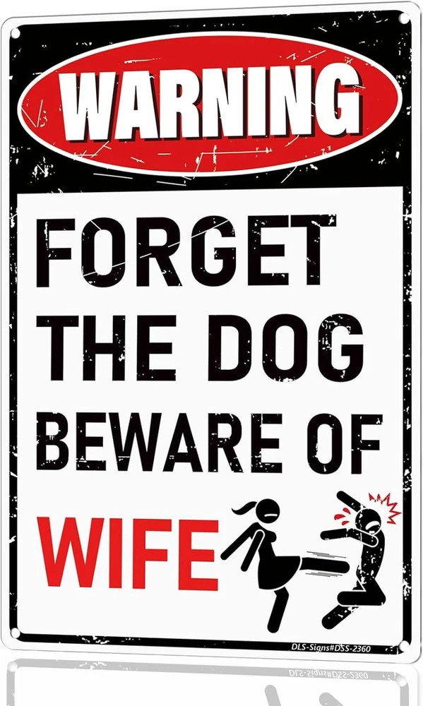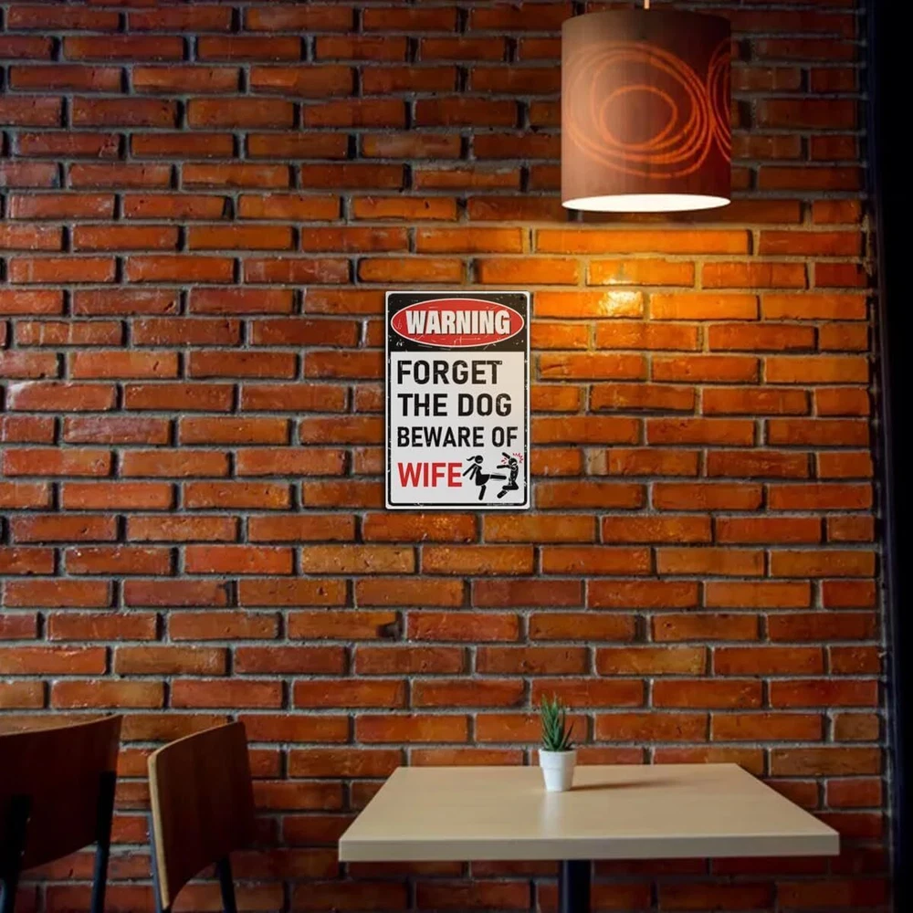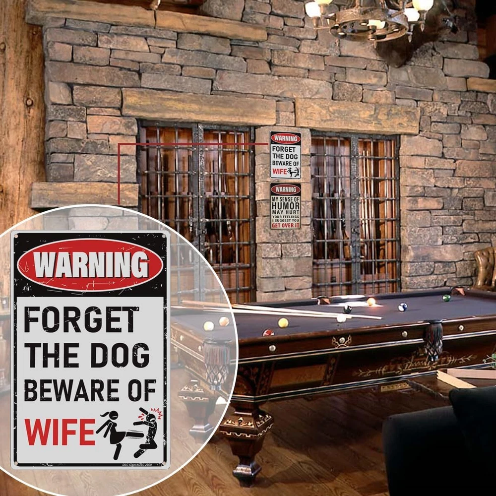'Forget the Dog – Beware of Wife!' Funny Man Cave Decor for Men | BEWARE-WIFE Product Details Mounting Type: Wall Mount Product Dimensions: 12"L x 8"W Shape: Rectangular Style: Retro Pre-printed: Letter Item Weight: 3.84 ounces Manufacturer: MOLESS Country of Origin: China Color: BEWARE-WIFE Brand: MOLESS Material: Aluminum Theme: Man Cave Recommended Uses For Product: Man Cave Decor Funny Decor: The sign grabs attention with warning design, to add playful touch and fun to your man cave, garage, or basement. 12 x 8 Inches: Compact yet bold—ideal for any man cave zone wall decor. Explore more funny mancave decor signs on MOLESS Signs. High-Quality: Made from durable, rust-free 0.030 aluminum for long-lasting use indoors or outdoors. Easy to Setup: 4 pre-drilled holes (0.2") for effortless hanging or mounting anywhere. Great Gift Idea: Ideal for mancave enthusiasts—ideal for gifting. Cool stuff for men! Pro Tip: Colors may vary slightly due to screen settings. Reach out if you have any issues—MOLESS Signs is here to help!
