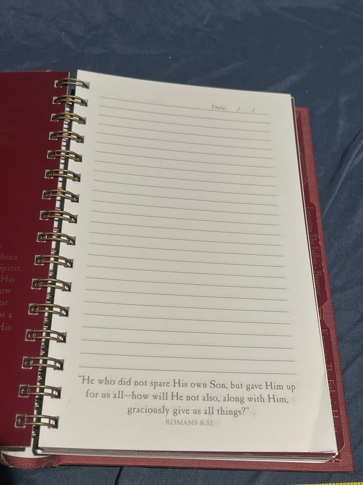 Experience the transformative power of introspection with the Forgiven Devotional Journal. Spiral-bound for durability, this journal features a sophisticated faux leather cover that exudes a sense of timeless charm. It’s a perfect companion for anyone seeking spiritual growth through the daily practice of reflection and gratitude. Crafted with care by Day Spring, a brand respected for their quality Christian inspirational materials, this journal is a testament to enduring design and purpose. Whether for personal use or as a thoughtful gift, it stands as a vessel for documenting your spiritual journey or offering words of encouragement to a loved one on the path of faith.