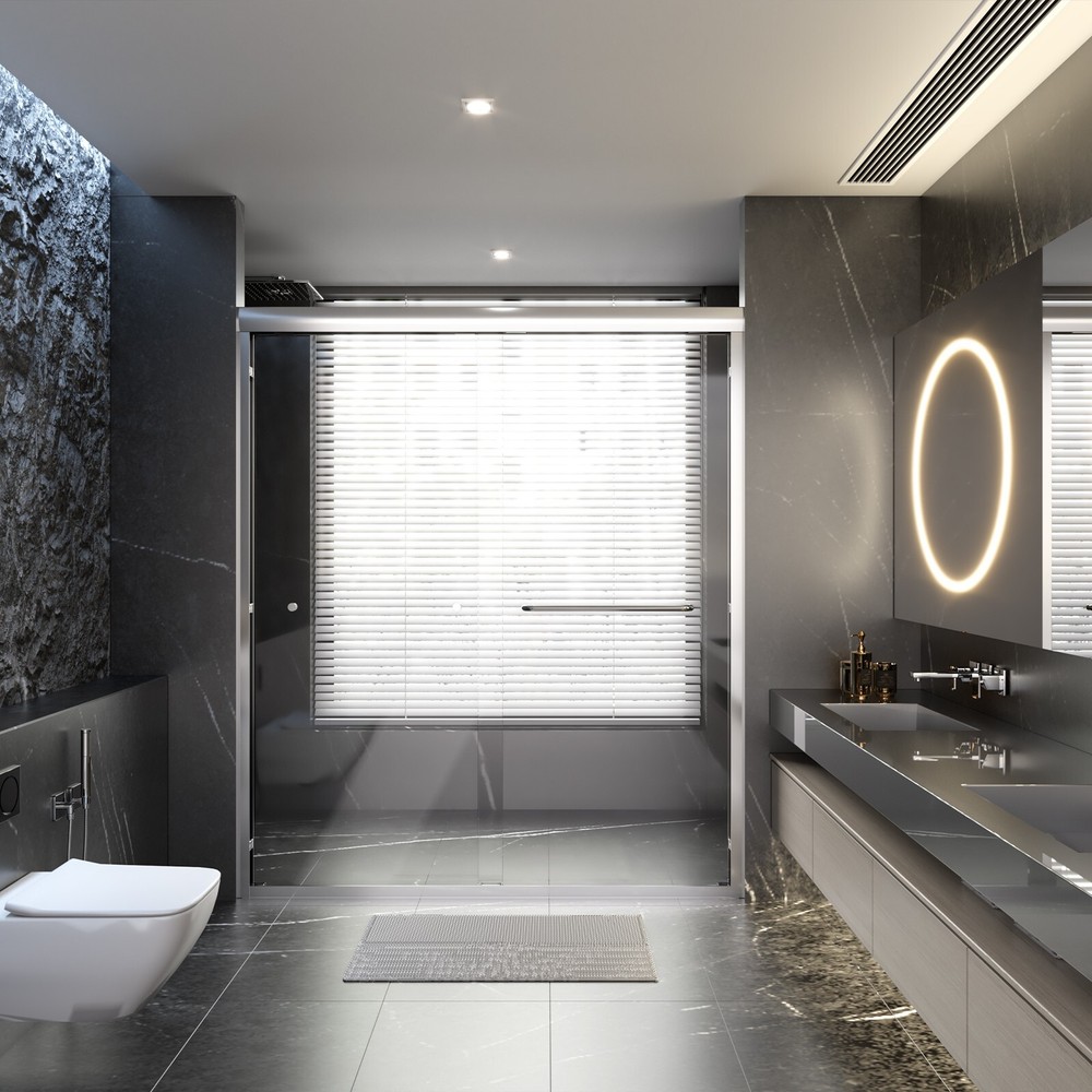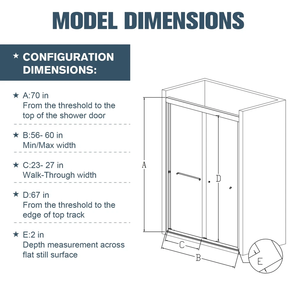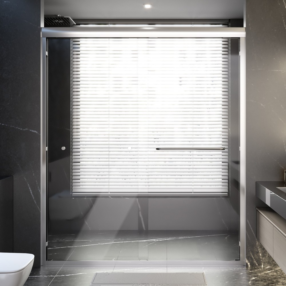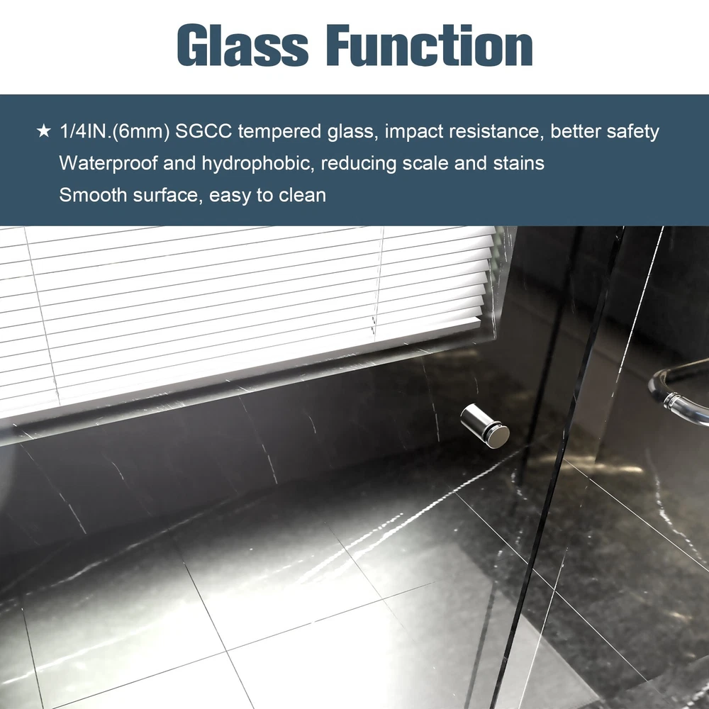60*70" Framed Sliding Shower Door in Chrome Product Information Item Code:P143495 Product Name:56"-60"W*70" H Semi-Frameless Double Sliding Shower Door, Bypass Shower Door, 1/4" (6mm) Thick SGCC Tempered Glass Door with Explosion-Proof Film, Chrome Place of Origin:China Main Color:Chrome Main Material:Glass+Metal Product Dimensions Assembled Length (in.):60.00 Assembled Width (in.):70.00 Assembled Height (in.):2.75 Weight (lbs.):101.00 Package Size Length (in.):72.00 Width (in.):35.04 Height (in.):5.52 Weight (lbs.):116.00 Product Features DOUBLE BYPASS SLIIDNG : This semi-frameless shower door can be adjusted to 56 and 60 in width by cutting, maximize your bathroom layout of our double sliding door system, designed for easy access while using minimal space for smooth, unobstructed movement. The door body is light and flexible, with a long mechanical life, and provides smooth opening and closing. SAFE & STYLISH BATHROOM PARTITION : This product is made of high quality 1/4"(6mm) SGCC certified tempered glass for impact resistance and high tensile strength. The surface is covered with explosion-proof film, increase the strength of the glass, avoid the splinters splashing hurt. Tempered glass surfaces are smooth and easy to clean and maintain, keeping your bathroom clean and tidy at all times. EXCELLENT WATERPROOF PERFORMANCE : This shower door is designed with a focus on water resistance. Its premium materials and advanced construction ensure a watertight seal, preventing any water from escaping your shower and onto your bathroom floor. CLASSIC AND HIGH-QUALITY MATERIALS : The shower door's main structure is made of lightweight and durable aluminum alloy with stunning and sophisticated matte black finish, which offers excellent corrosion and oxidation resistance, ensuring the stability and durability of the shower door without deformation over time. EASY INSTALLATION: The complete packaging of the shower door includes all necessary components, ensuring a smooth and unobstructed installation process. And the packaging comes with an easy to understand installation guide that covers component preparation and step-by-step installation. Do Read before You Buy : Refund& Return -Returns are accepted within 30 days.Any problems, please feel free to contact us by ebay message first, let's figure problems out together,your email will be replied within 1 business day. -We provide free Return service, but return shipping cost will be on you in below circumstances : 1. C hanged your mind or do not need /want the item or other personal reasons. 2.Items may slightly differ from photo s in terms of color and lighting differences & on different monitor’s display. 3. Manual measurement has been used, there may be some reasonable error range. 4. Choos ing the wrong size , type or color cause s unfit ting problem . Or didn't read specifications and descriptions, causes real item is different with own imagination or expectation. 5. Buyer did not know how to install or Use the item 6.Find a better price elsewhere . -Returns for free / free Replacement / free parts only happens in condition of product issue/ arriving broken /wrong item or missing parts. -For the quality issue , defective photo s must be attach ed in mails / when Return. Shippment Warning : if we shiped out the item and buyer wants to cancel the order or change address,buyer need to pay possible shipping cost . Please cancel the order or Change address before we ship out. After sals Service -we are responsible for accessories missed ( please contact us first ,and attach photo of what you've received ) -we are responsible for all losses caused by product quality issues ( Resend or Refund, please also attach defective photo s) Feedback We do appreciate hav ing such opportunity to solve the problem before leaving feedback s . Cause negative feedback solve s NO problem, but we DO ! Hope you have a good time shopping in our store! We are honored !