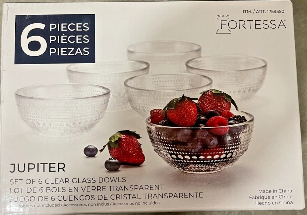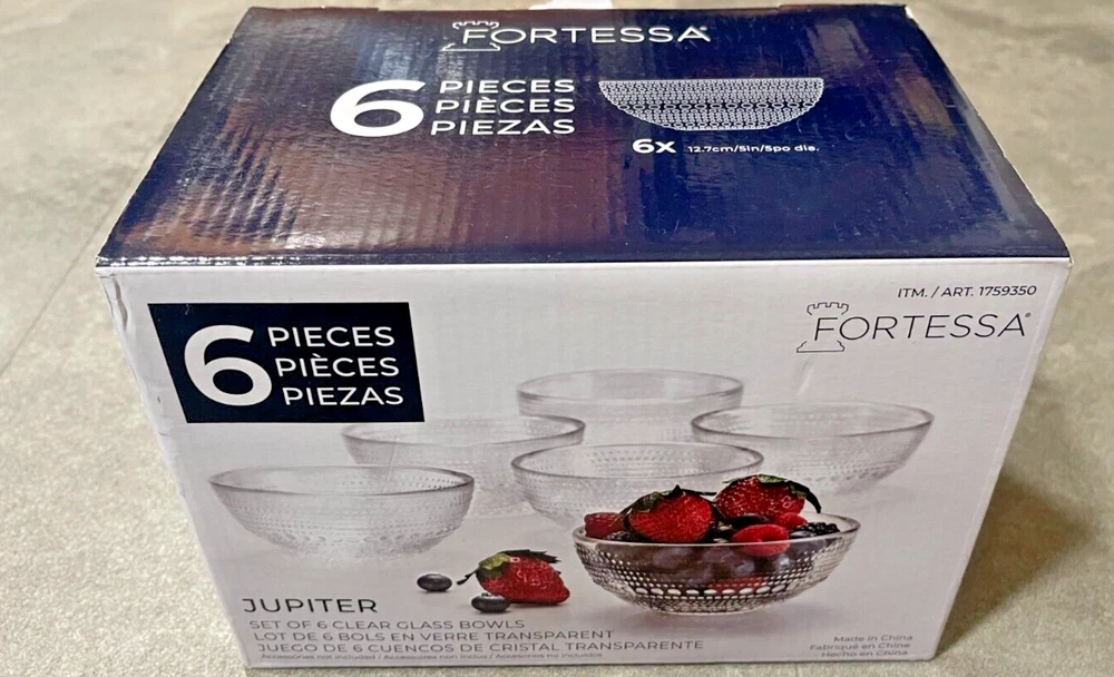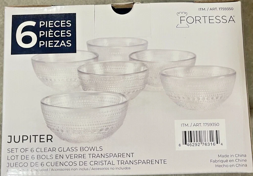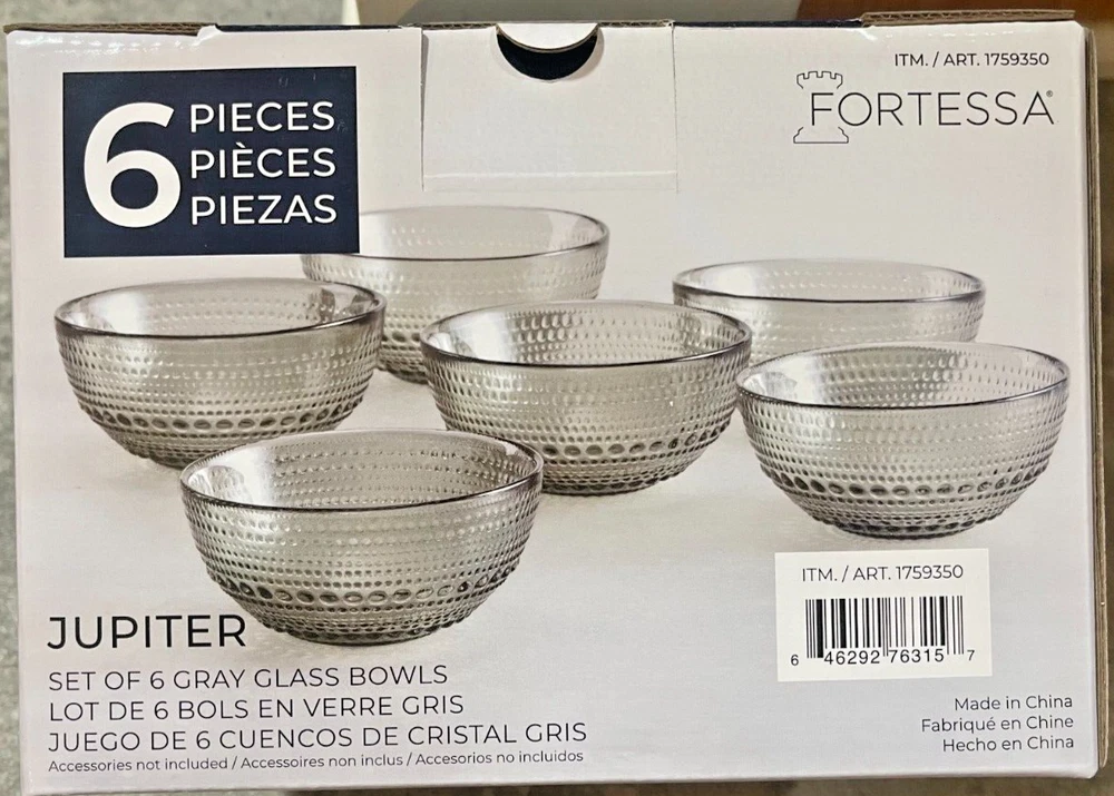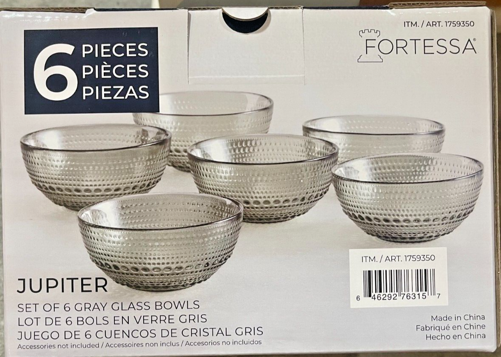 FAST FREE SHIPPING IN USA!!! ORDERS RECEIVED BEFORE 2PM - SAME DAY SHIPMENT!!! AFTER 2PM - NEXT DAY SHIPMENT!!! OUR WAREHOUSE WORKING MO-SAT(9am-9pm) CLEARANCE! Last pieces remaining—future availability currently unknown!!! "Discover our store! Explore a variety of interesting products at great prices. Don’t miss out—check it out now!" Fortessa Jupiter Vintage Glassware Collection 5 Inch Cereal Salad Dessert Snack All-Purpose Bowl 6 Pack, Smoke Gray, 14 Ounce (6 Pack) Features: Set of 6 Cereal Bowls Elegant Hand-Crafted Aesthetic Design Works with Traditional or Casual Place Settings Beaded Design Texture Dishwasher Safe About this item CLARITY AND QUALITY - With the new Fortessa Jupiter Collection All-Purpose cereal bowls, you can bring the wildly popular Jupiter beaded glassware style to your breakfast table. You can capitalize of the shift to durable, casual elegance from a brand you have trusted in your home for almost 30 years. Our drinkware is highlighted by an unmatched attention to detail and quality. VERSATILE AND DISHWASHER SAFE - Storing and cleaning are a breeze. Use these bowls for more than just cereal! Great for desserts, salads, snacks, and much more! They are stackable and all items in the Jupiter collection are 100% dishwasher safe, for a stress-free clean every time. SIZING: These bowls are perfect for all kinds of uses. Including for cereals, desserts, salad, and so much more! They can hold up to 14 ounces and measure 5-inch diameter with a 2 inch wide base. TRUSTED FOR ALMOST 30 YEARS: At Fortessa we aim to bring memorable experiences to your table every day. Offering Glassware, Dinnerware, Flatware and so much more, we strive to show our customers the difference between a meal and an experience. JUPITER COLLECTION: Our Jupiter collection is also available in 2 drinking glass sizes, 2 cake stand sizes, can coming soon a mixing glass and margarita glass! Available in up to 10 classic and trendy colors with more coming soon. Product Details Inspired by Parisian flea market finds, Jupiter bowls help set a festive table with a pop of color. Bands of beaded detailing have timeless elegance and add to each piece’s handcrafted aesthetic. Includes: 6 Jupiter Bowls Features: Bowl (6): 5” x 2.3”, 13.5 oz Available in CLEAR, GREY.