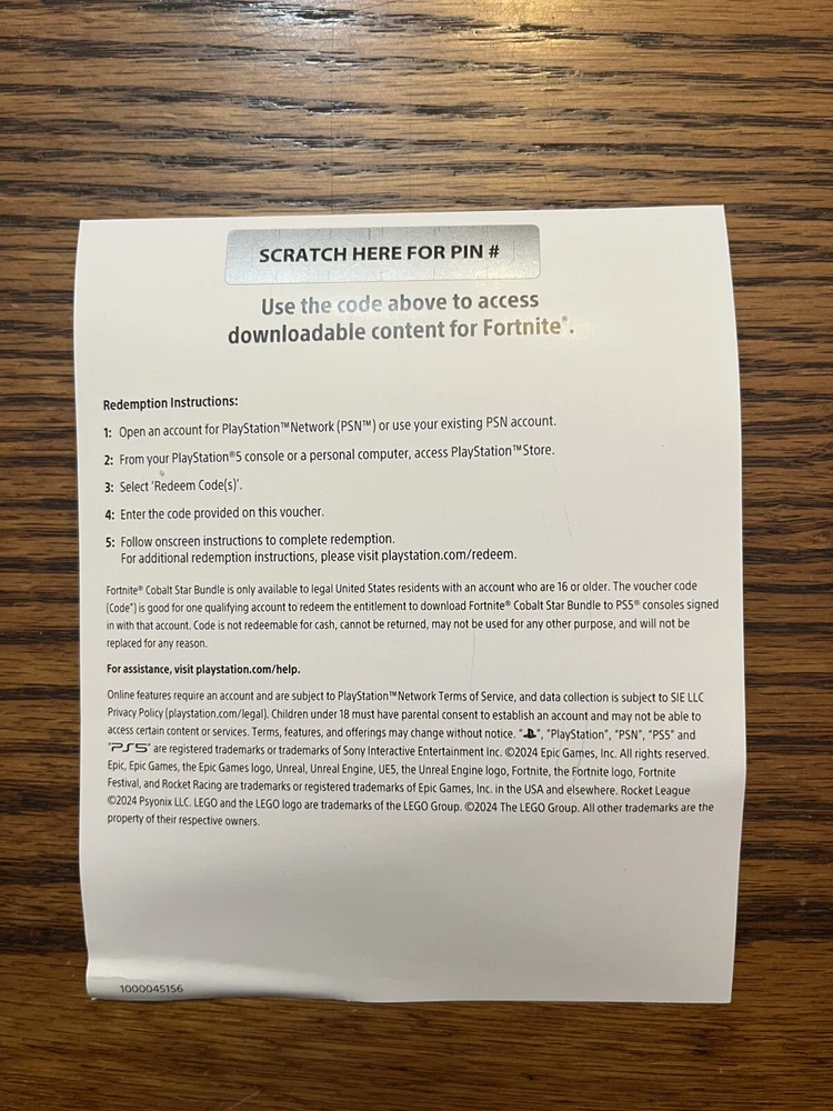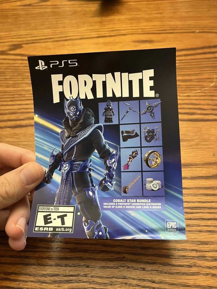 Includes the Fortnite Cobalt Star Bundle unused voucher from the ps5 digital version. Voucher includes 8 Fortnite cosmetic items and 1000 v-bucks.