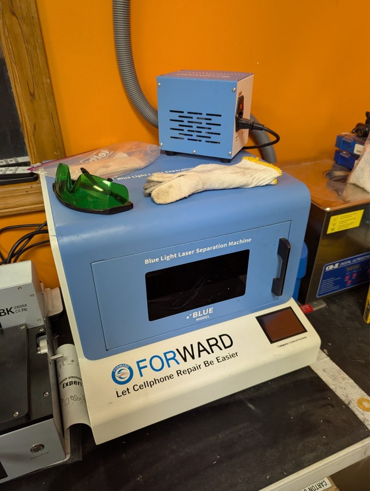 The Forward Blue Light Laser Separation Machine with Air Purifier is a cutting-edge device that uses blue light technology to safely and reliably separate and remove back glass from iPhone, Motorola, and LG devices . This machine is ideal for shops performing high-quality electronic separation and cleaning services. This unit is made in China and supports a wide range of models from iPhone, Motorola, and LG. With an advanced blue light laser system, it ensures precise separation while minimizing the risk of damage to internal components. Included: Forward Blue Light Laser Separation Machine with Air Purifier USB drive containing every back glass template for iPhone, Motorola, and LG devices Perfect for repair businesses looking for a reliable, professional-grade solution for back glass removal.
