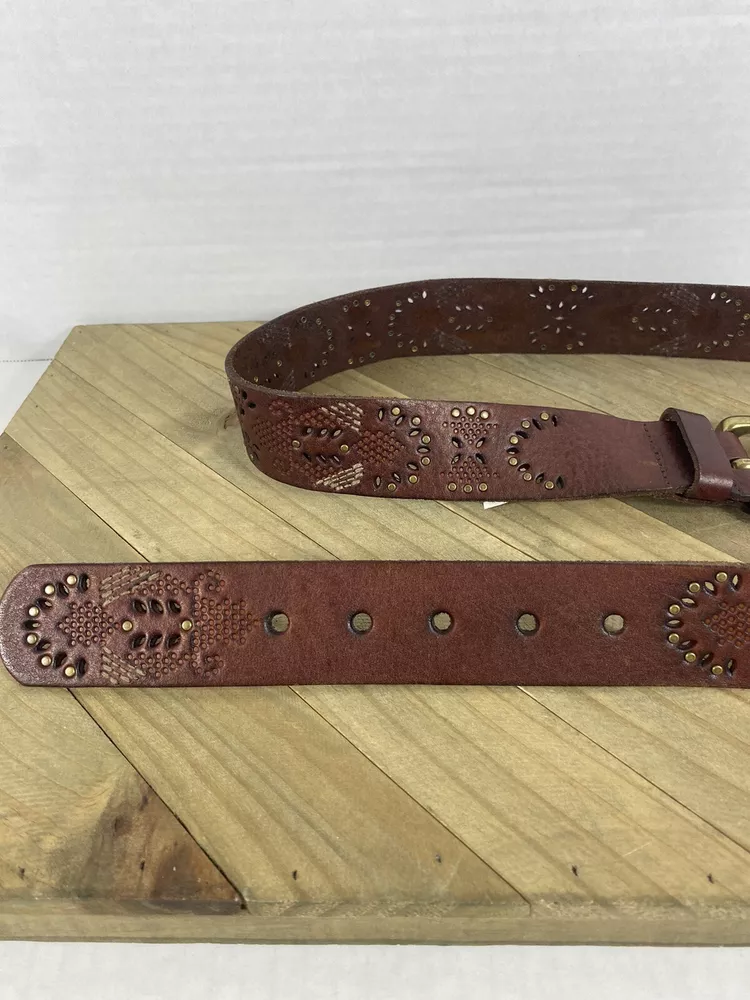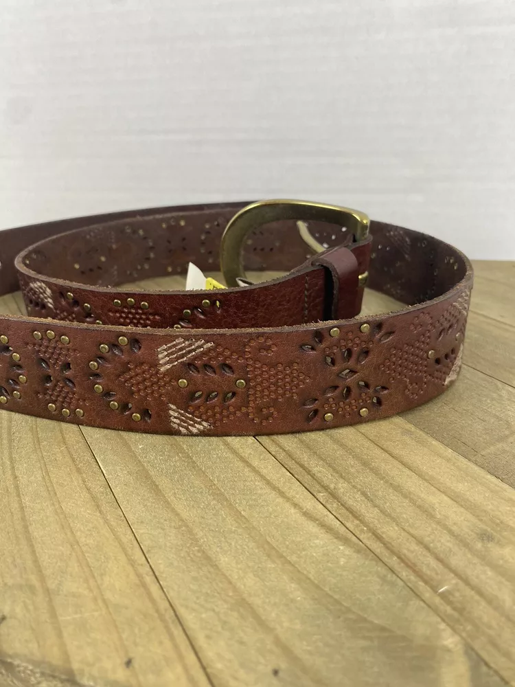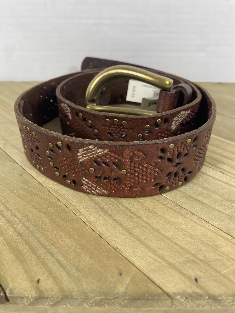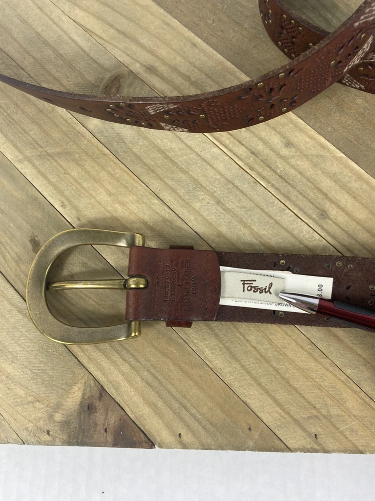 This Fossil belt is in good condition! It is new with the tags still on. From the buckle to the edge of the belt it measures 43” and is a size Large. If you have any questions please feel free to ask! Thank you for looking!