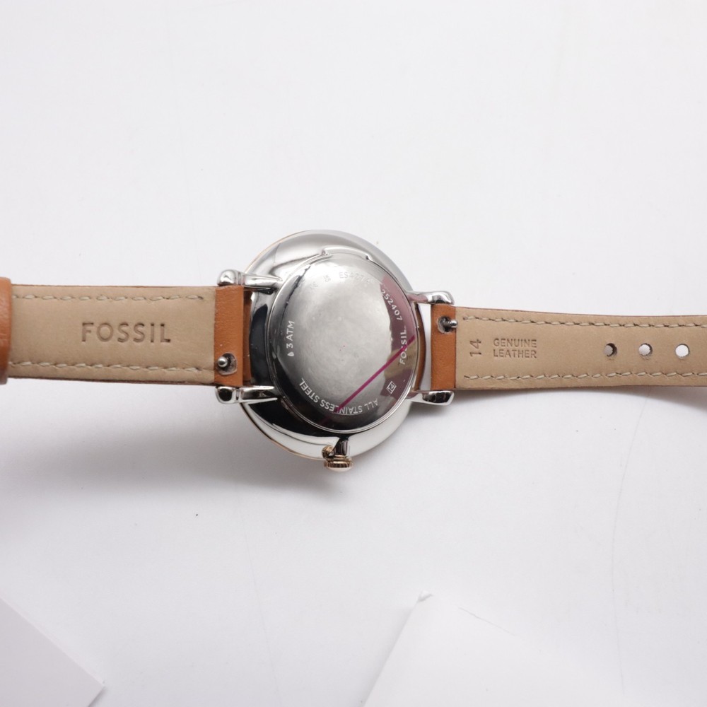 The Fossil ES4274 Jacqueline watch is a stylish and functional wristwatch designed for women. It features a blue dial with easy-to-read analog display, complemented by silver and rose gold case colors. The watch has a quartz movement powered by a battery, with a water resistance of up to 30 meters. The brown leather band adds a touch of elegance to the overall design, making it a versatile accessory for everyday wear.