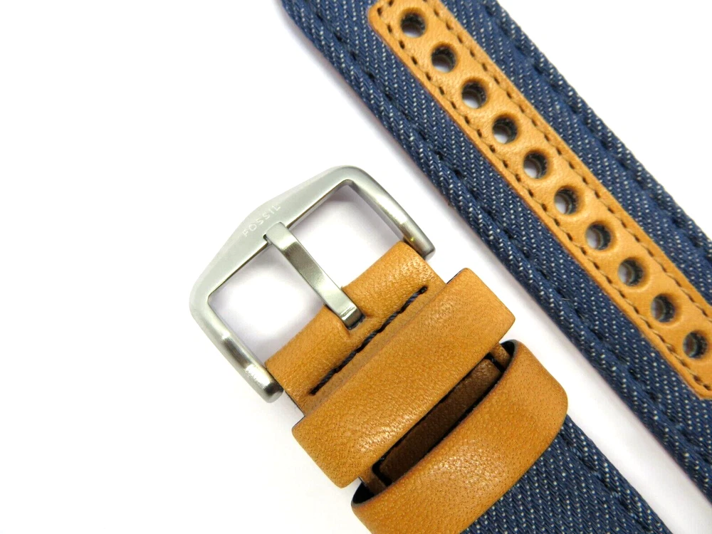 Watch strap original FOSSIL Also fits other watches with 22 mm lug width. FOSSIL: Model LE1135 Material: leather/jeans Color: Braun /Blue Bridge width: 22 mm Clasp: Stainless steel pin buckle, matt silver Scope of delivery: Strap with two spring bars Watch strap original FOSSIL Also fits other watches with 22 mm lug width. FOSSIL: Model LE1135 Material: leather/jeans Color: Braun /Blue Bridge width: 22 mm Clasp: Stainless steel pin buckle, matt silver Scope of delivery: Strap with two spring bars