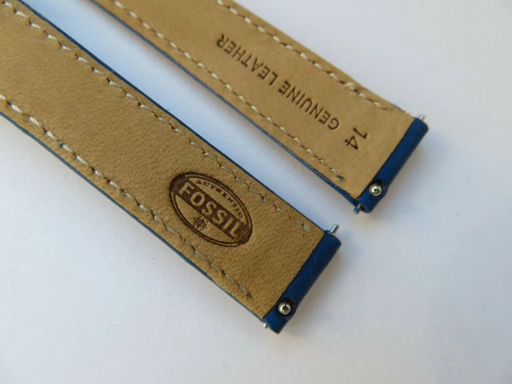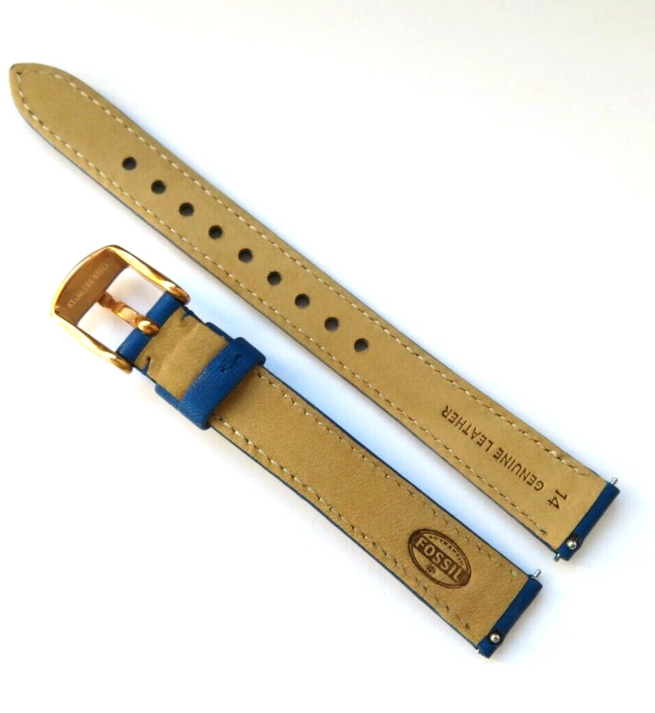 Watch strap original FOSSIL Also fits other watches with a 14 mm bridge width. FOSSIL: Model ES3795 Material: Leather Color: Blue Bridge width: 14 mm Clasp: stainless steel pin buckle rose gold Scope of delivery: band with two bars, quick release Watch strap original FOSSIL Also fits other watches with a 14 mm bridge width. FOSSIL: Model ES3795 Material: Leather Color: Blue Bridge width: 14 mm Clasp: stainless steel pin buckle rose gold Scope of delivery: band with two bars, quick release
