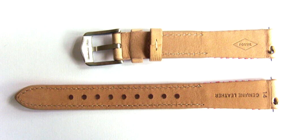 Original FOSSIL watch strap for the model AM4204. The strap also fits all other watches with a 14 mm lug. FOSSIL: Model AM4204 Material: Leather Color: beige Bridge width: 14 mm Length of clasp side: 85 mm Length hole side: 120 mm Clasp: Stainless steel pin buckle steel Scope of delivery: Strap with two spring bars Original FOSSIL watch strap for the model AM4204. The strap also fits all other watches with a 14 mm lug. FOSSIL: Model AM4204 Material: Leather Color: beige Bridge width: 14 mm Length of clasp side: 85 mm Length hole side: 120 mm Clasp: Stainless steel pin buckle steel Scope of delivery: Strap with two spring bars