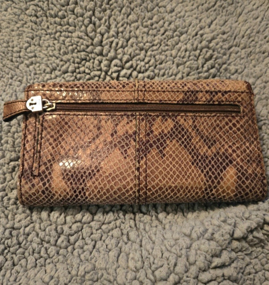 Fossil Wristlet Wallet Snakeskin Brown Leather Zip Clutch Small Womens
