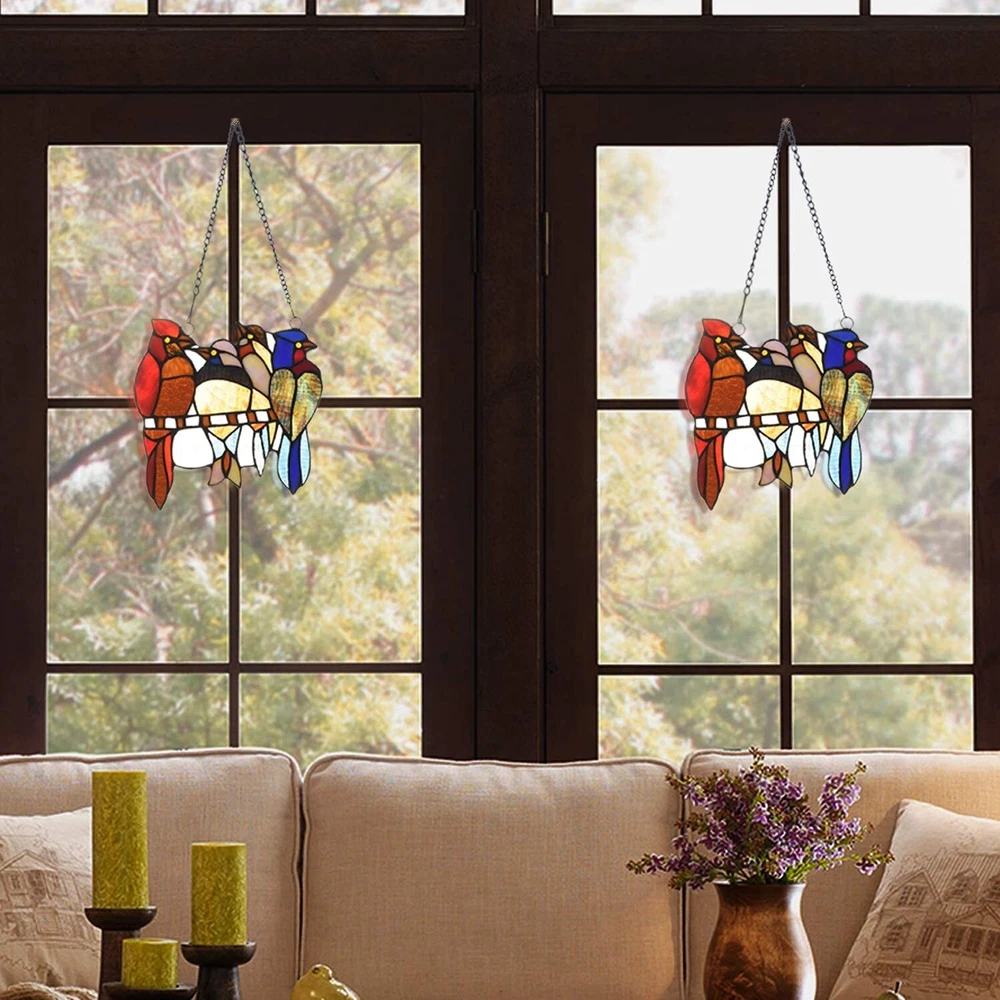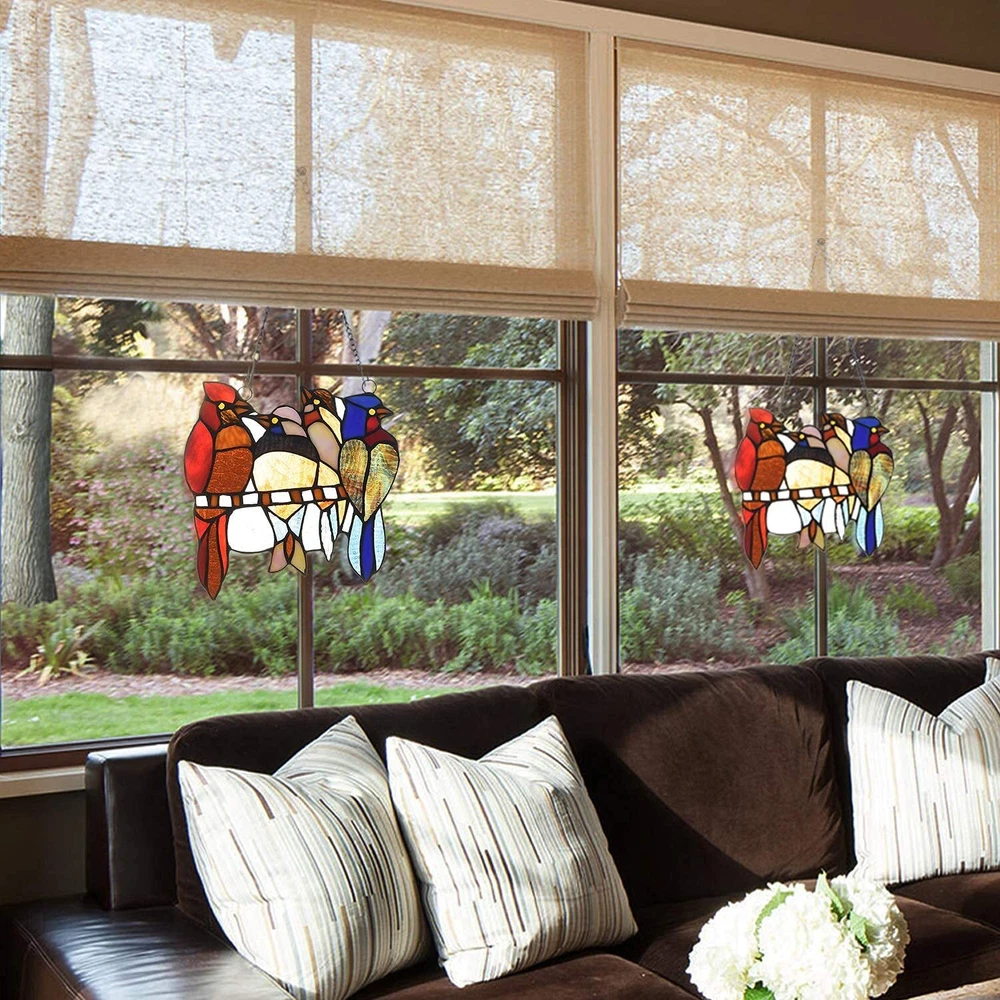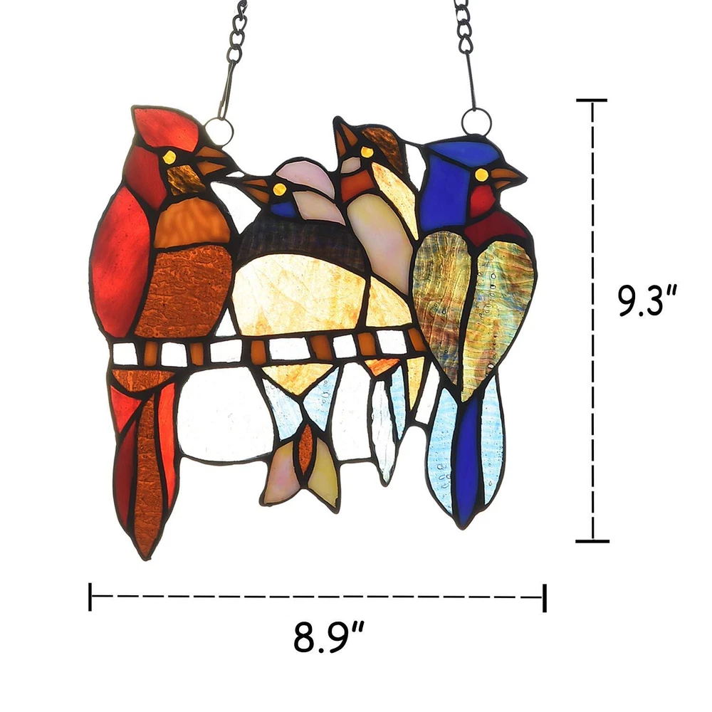 as a Tiffany Stained glass Professional Manufacturer since 2005. Abstract art is all about geometric shapes and design. It’s Picasso, Matisse, and Mondrian, a style that takes rudimentary forms and converts them into something extraordinary. Contemporary stained glass takes this classic form of art and design, allowing it to work with today’s architecture. When we think of contemporary art, we think of shapes, geometry, and city-centric appeal. With contemporary stained glass designs, you can have the best of a classic art form with a futuristic feel, it’s multi-functional for art and lighting. Tiffany glass is flexible when it comes to decor. Any type of style is accepting to accent that stained glass can offer. Kitchens, dens, bedrooms are favorite spots for an uplifting sun catcher. What types of glass are used in stained glass? Color glass provides the color and texture that is seen in every detail of the work. The exquisite finished product takes much time to make colors, textures and hues work together. Dimensions and Weight 8.9" length x 9.3" height, 2.6 lbs. How to clean stained glass sun catchers? Care must be taken when cleaning stained glass. Minimal dusting is recommended. If the piece requires further care, use distilled water in a spray bottle to loosen any dirt and wipe with a lint free towel. Keep away from areas where grease can build up on the stained glass for best results. How to store stained glass? Use bubble wrap or newspapers to provide a soft and non-shifting environment for stained glass panels. Pack in a dry carton or other container and store in an area where it stays above freezing. Have something else in mind for an abstract design? Contact us and we can create exactly what you envision. Four Birds Stained Glass Window Hangings: The stained glass window panel features colorful birds perched on a branch, creating a vibrant and whimsical scene. It measures 9.3 inches in height and 8.9 inches in width, making it a perfect size for any window. Handcrafted with care: Each stained glass panel is handcrafted by skilled artisans, ensuring attention to detail and quality. The vibrant colors and intricate design make it a stunning addition to any home decor. Stained glass Crafts product: Design with 4 birds in stained glass, vividly presents the frolicking of birds. This stained glass art panels is marveled every time when the sunshine comes through window. Fusion of sunlight,art,birds: Because of the stained glass's opacity, when light is illuminated from behind, the stained glass is given activity and life.It is a wonderful way to enjoy the morning sun Perfect gift: The stained glass panel makes a perfect gift for any occasion, including birthdays, anniversaries, weddings, and housewarming parties. It's a thoughtful and unique gift that will be cherished for years to come.