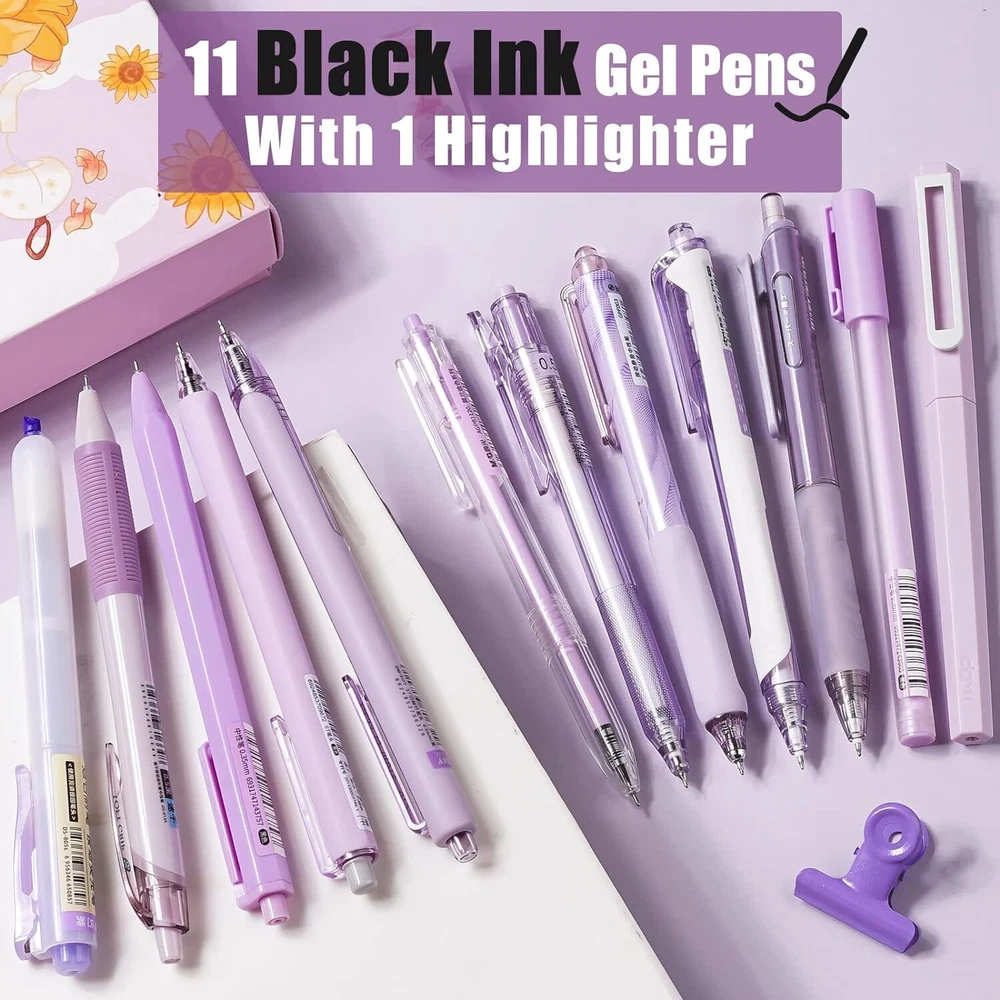 Four Candies 12Pack Pastel Gel Ink Pen Set, 11 1 Count (Pack of 12), Purple Product Details Manufacturer: Four Candies Brand: Four Candies Item Weight: 5.6 ounces Product Dimensions: 5.51 x 5.91 x 0.71 inches Item model number: FC-ZXB/12-ZI Color: Purple Closure: Retractable Grip Type: Rubber, Textured, Ergonomic Material Type: Plastic, Rubber Number of Items: 12 Size: 1 Count (Pack of 12) Point Type: Fine Line Size: 0.5mm Millimeters Ink Color: Black Manufacturer Part Number: FC-ZXB/12-ZI Brand: Four Candies Writing Instrument Form: Roller Ball Pen Color: Purple Ink Color: Black Age Range (Description): Adult, Teen Lovely Macaron Colors: The set contains 10 black gel pens, 1 purple ink pen and 1 highlighter, they come in cute macaron colors and different styles, provides you multiple grips and different writing experiences Various Nibs: The gel pen set offers different nibs: ST nib, bullet nib, CS tapered nib, 3 mm wide nib for highlighter, fine spring structure built into the nib, which makes ink output stable and writing easier and smooth Premium Quick-Drying Ink: The black ink pen uses premium gel quick-drying ink which dries quickly to keep the paper clean and no ink leakage, the large-capacity ink provides you with long-lasting writing time; Each nib is sealed with wax to prevent the ink from drying out Portable Pen Clip: Each cute pen comes with a different style of clip to easily fasten it to a notebook or pocket, easy to carry and prevent loss Wide Application: Aesthetic gel pen set with highlighter of the same color, suitable for taking notes, marking key points, writing a diary, doing handbooks or painting, etc; Pens in every color are vibrant and make an ideal back-to-school gift for girls, students, kids