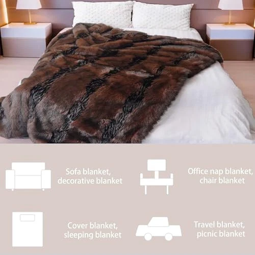Fox Faux Fur Blanket Luxury Fur Throw Blanket Sofa Fluffy Blanket Super Warm