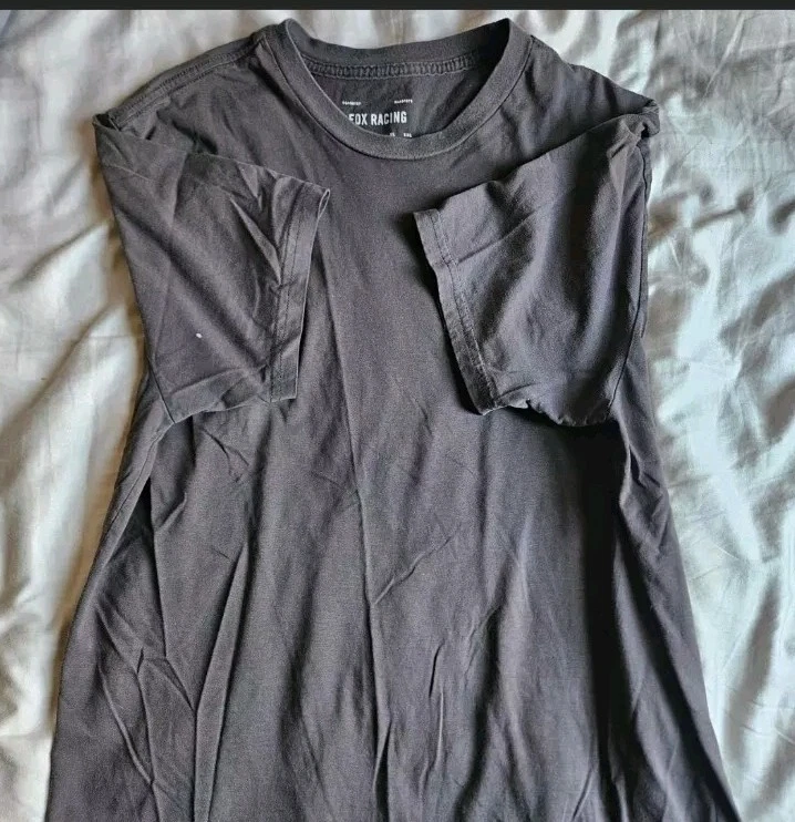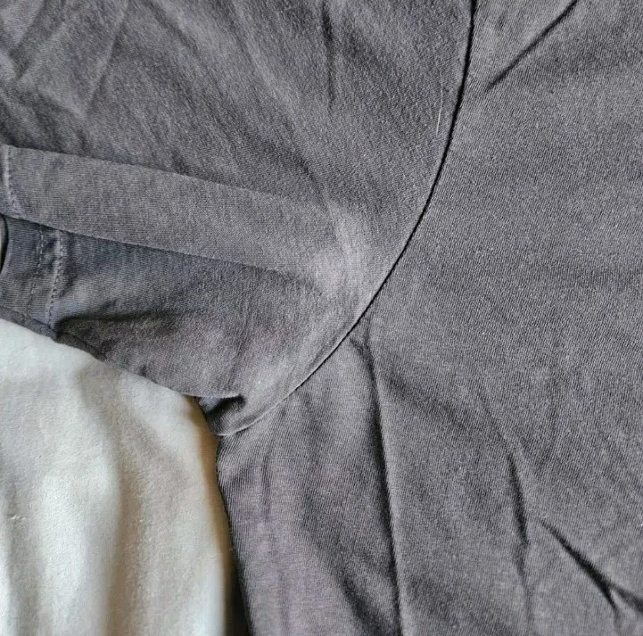 FLAWS-Small fading on the pits and a tiny bleach stain on one sleeve both are unnoticeable Pit to pit 20.5" Length 29.7"