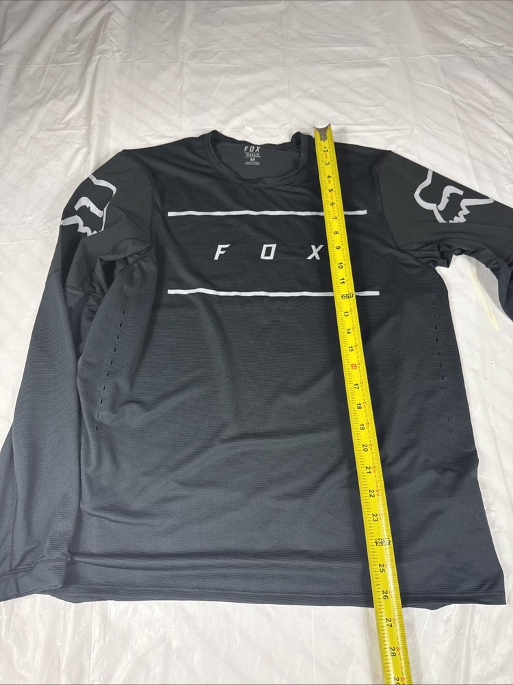 The Fox Racing Flexair Long Sleeve L Fine Line Jersey in Black, size M, is a casual cycling top designed for men. It features a comfortable lining and is perfect for cycling activities. The Fox Racing Flexair model offers high performance and style for riders looking for a quality jersey.