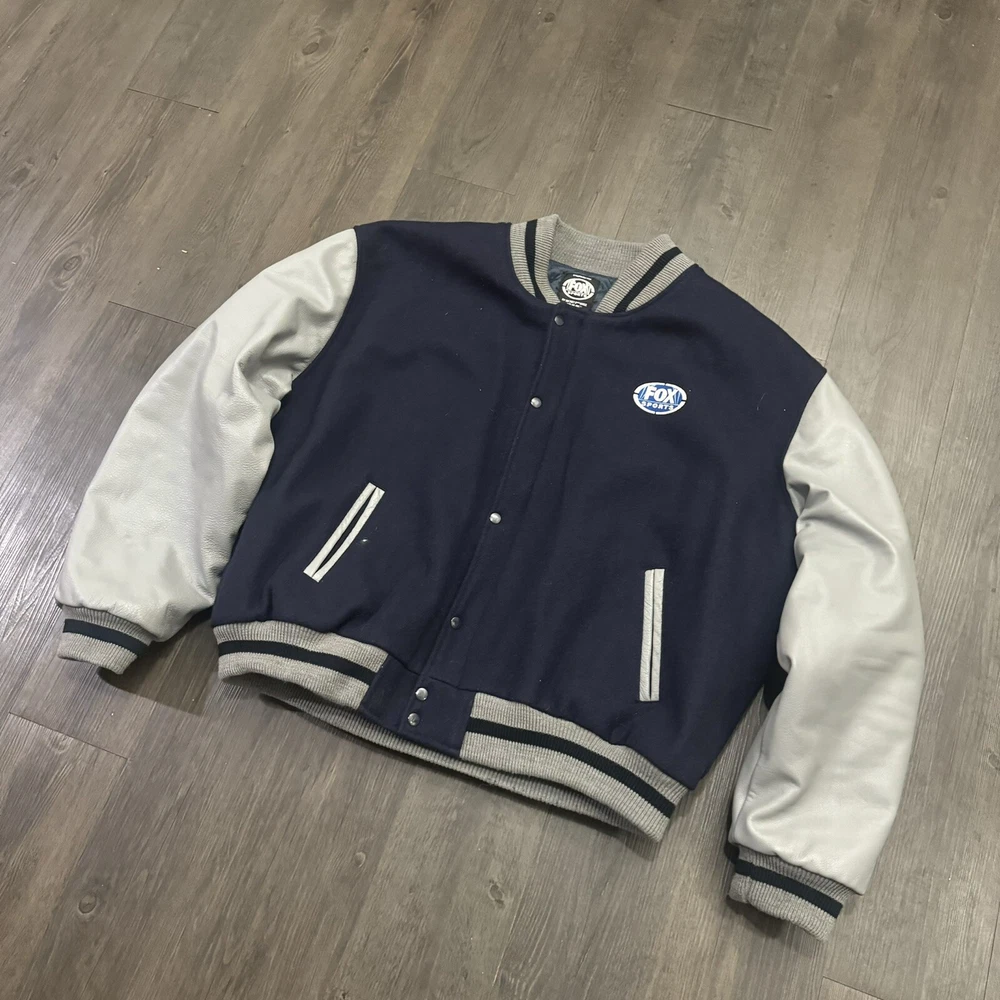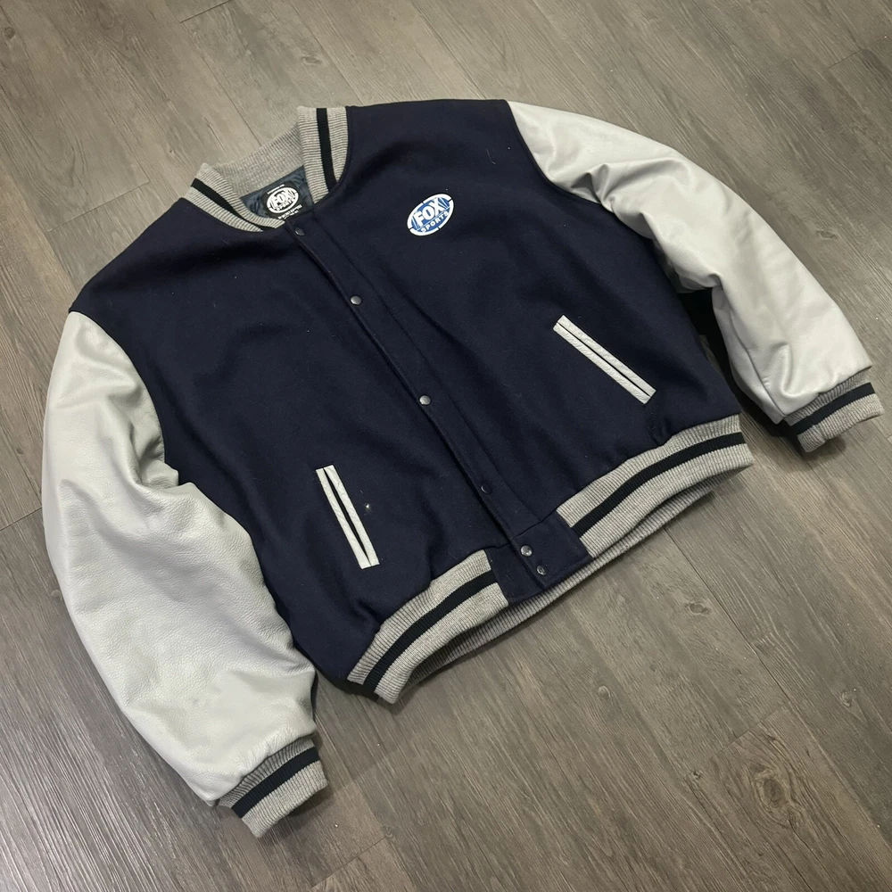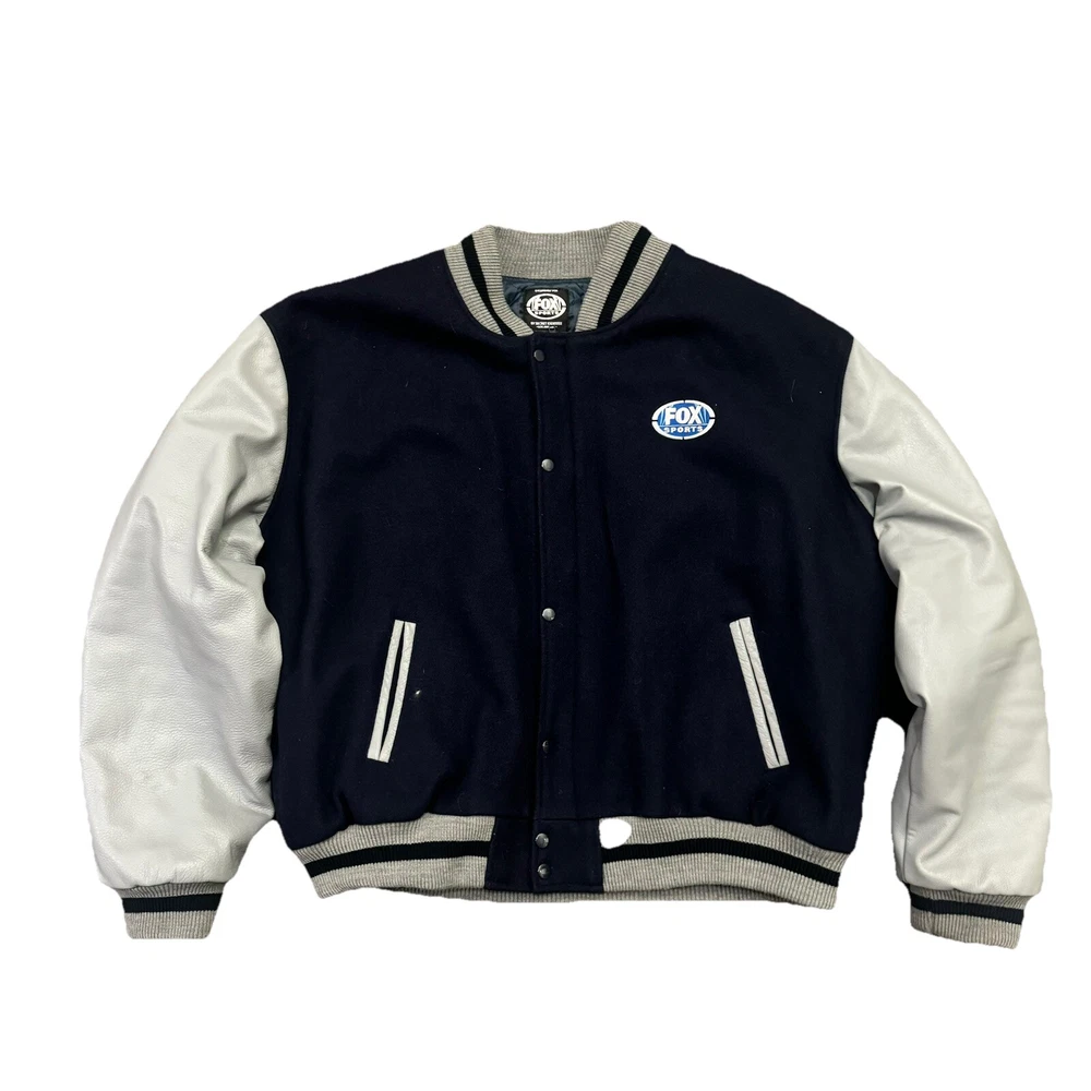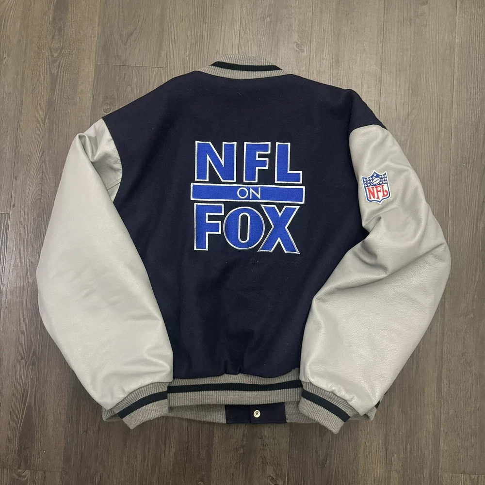 Fox Sports NFL on Fox MENS 2XL Leather Wool Snap Close Varsity Jacket