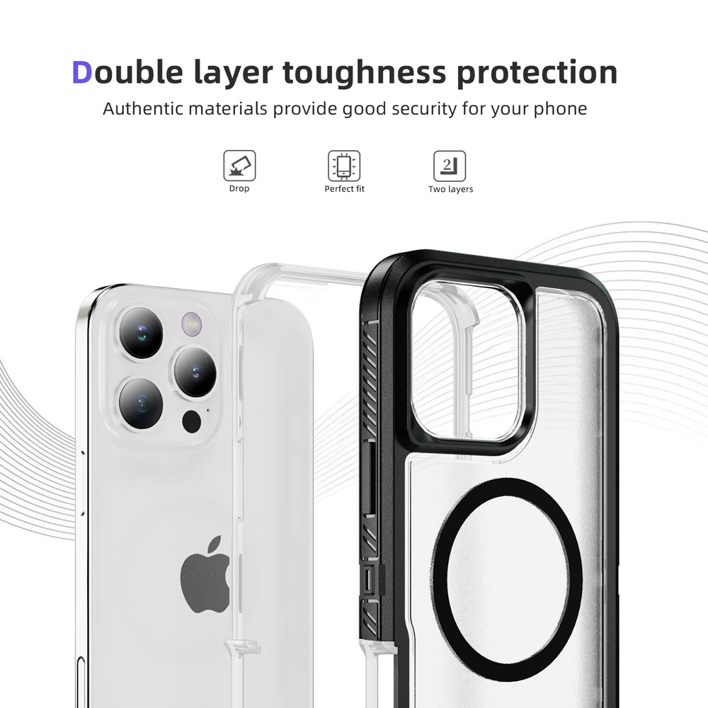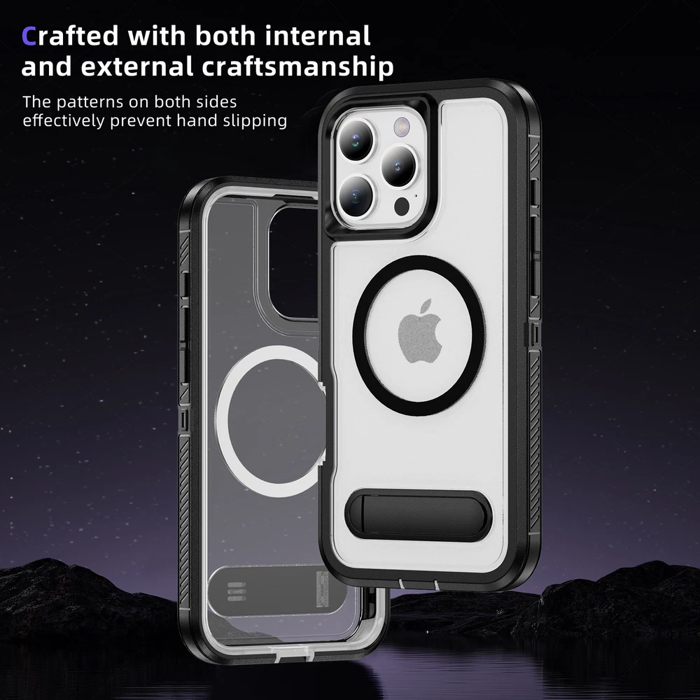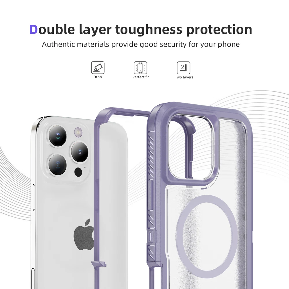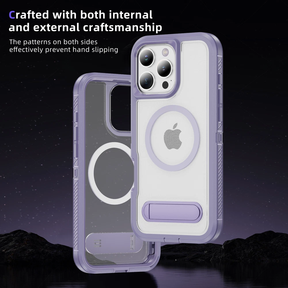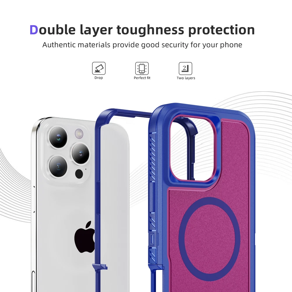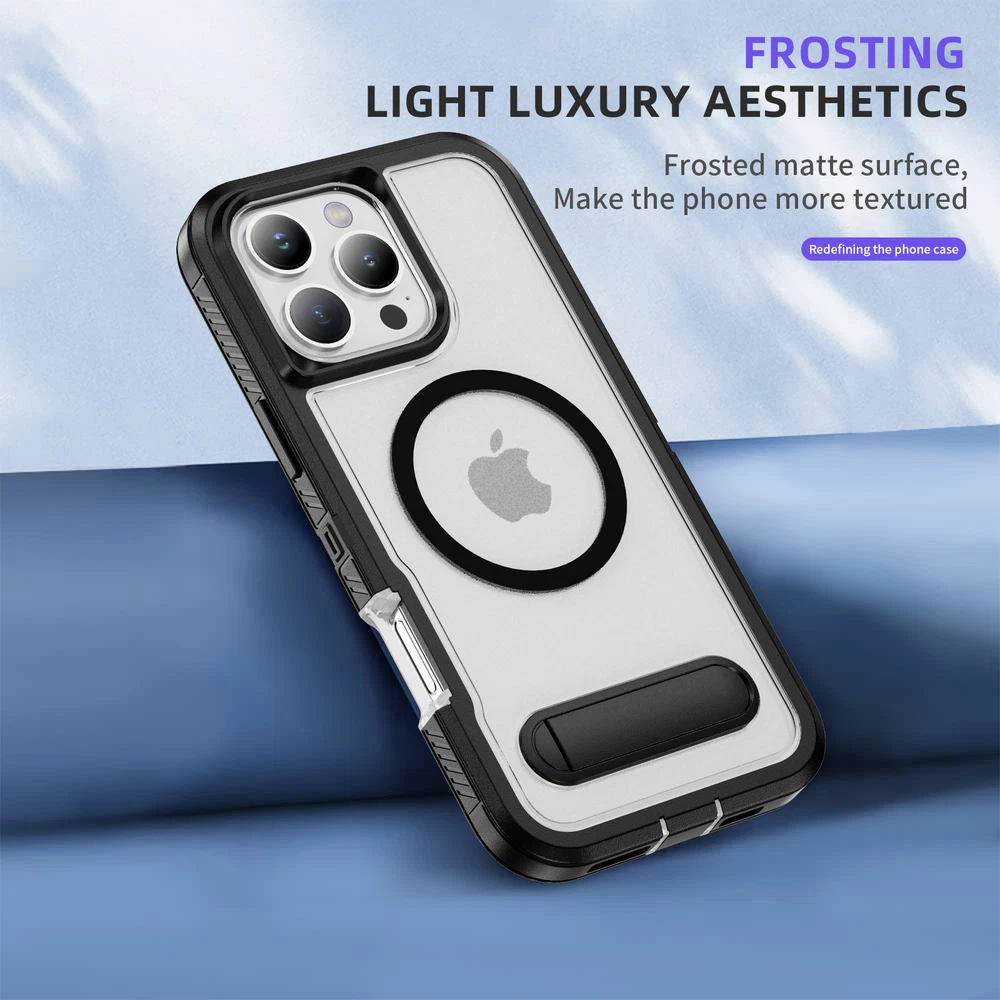 Fr iPhone 16 Pro Max 15 14 13 11 Mag Safe Case Built-in Stand + Screen Protector Key Features: Military-Grade Drop Protection: Advanced shockproof technology on all four corners and a 3-ply cushioning TPU bumper provide superior protection.Raised bezels around the screen and camera offer extra defense against dust and scratches. Enhanced Magnetic Compatibility: Compatible with Mag Safe accessories including Magnetic wallets, Car Mounts, etc, this case aligns perfectly with Magnetic chargers for a secure connection and faster wireless charging. Built-in Hidden Kickstand: The phone case is built in a hidden stand, which can hold your phone up vertically or horizontally as you wish to release your hands. Whether you're watching TV shows or video-chatting, this case with stand offers the perfect viewing angle based on ergonomic considerations to ensure optimal viewing comfort. Package: 1* Case Cover (Phone Is not included!) 1* Screen Protector