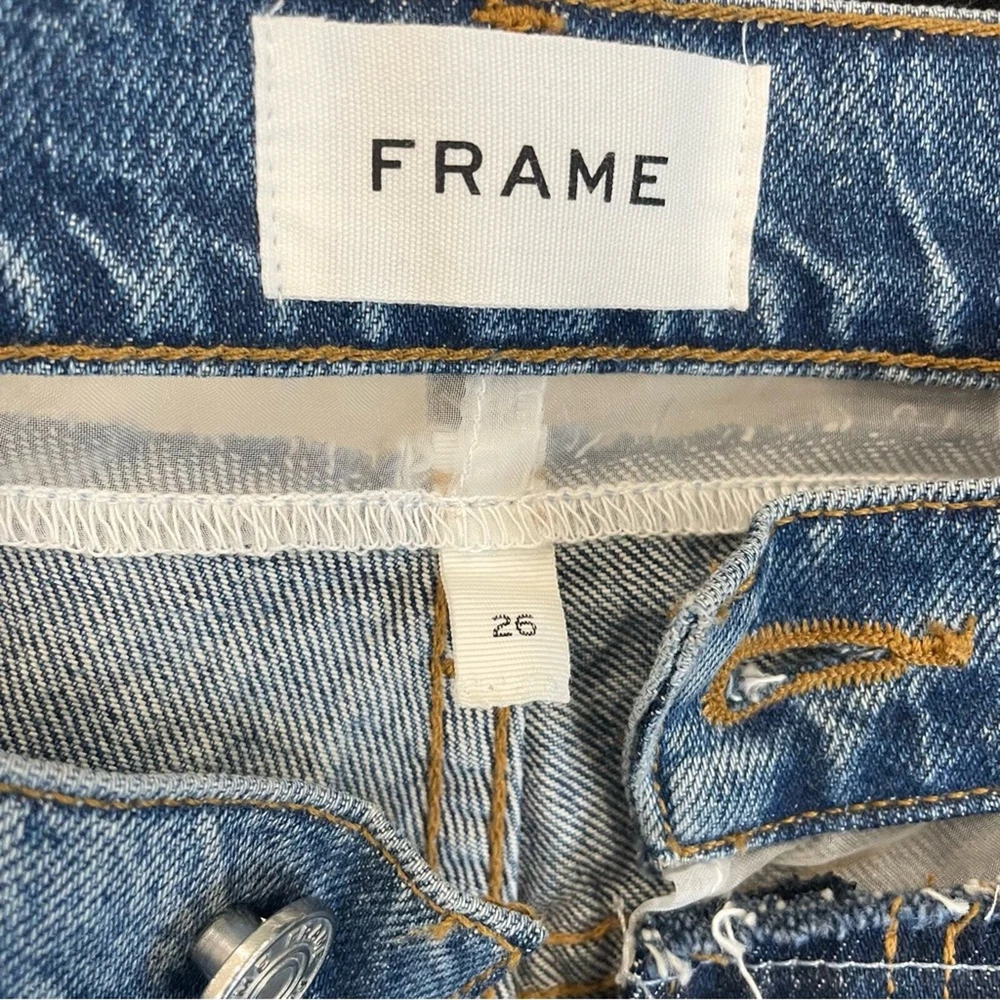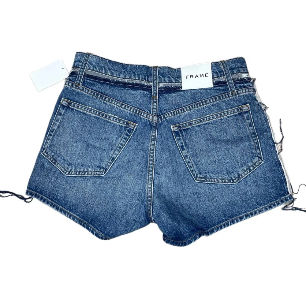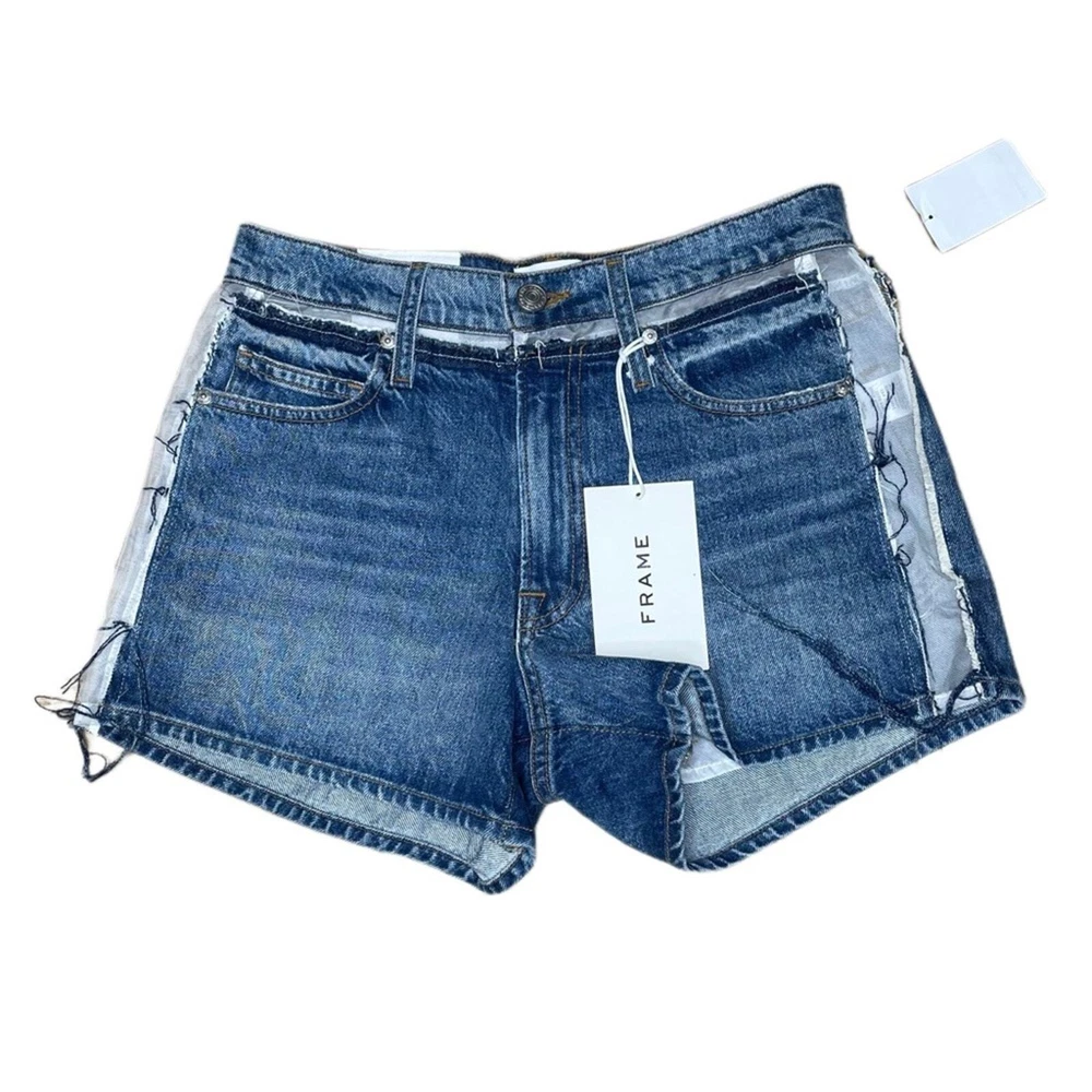 New with tags Frame Atelier Sheer Insert Short Color: Blue Designed by FRAME Atelier, this mid-rise short balances rigid denim in a medium blue wash with sheer organza insets for a sexy juxtaposition between feminine allure and the original FRAME boyfriend-fit silhouette. 100% Cotton Women’s Size 26 Waist: 14.5” across (flat lay) Rise: 10.5” Inseam: 3.5”