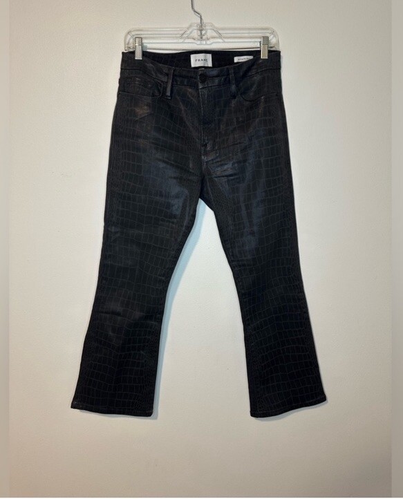 Sz 31 Excellent Condition Retro A contoured high-rise waist balances the slightly flared cut of cropped jeans crafted