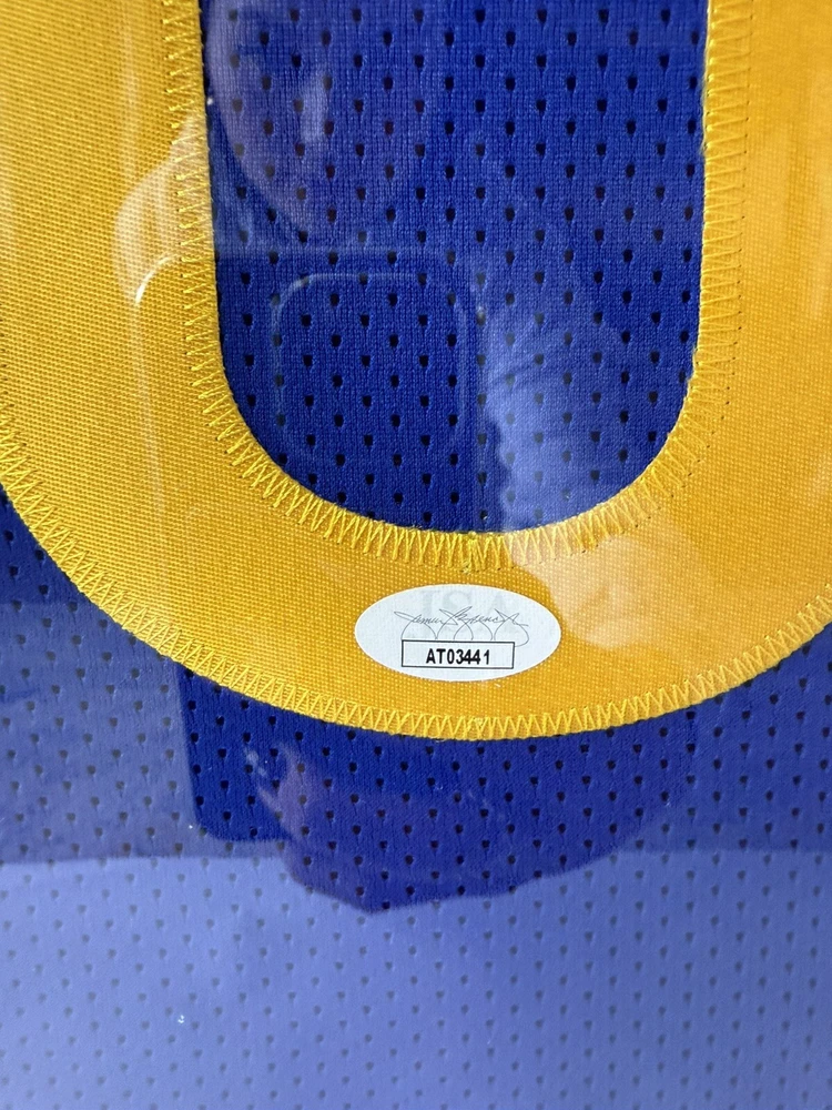 This framed autographed Golden State Warriors jersey is a must-have for any Stephen Curry fan. The jersey is an original, and has been signed by the NBA player himself. It has been authenticated by James Spence Authentication (JSA), ensuring its authenticity. The jersey is perfect for display in your home or office, and is a great addition to any sports memorabilia collection. The autograph authentication provided by JSA adds value to this product, making it a reliable and desirable item for any basketball fan. The size of the frame is 32” x 24”.
