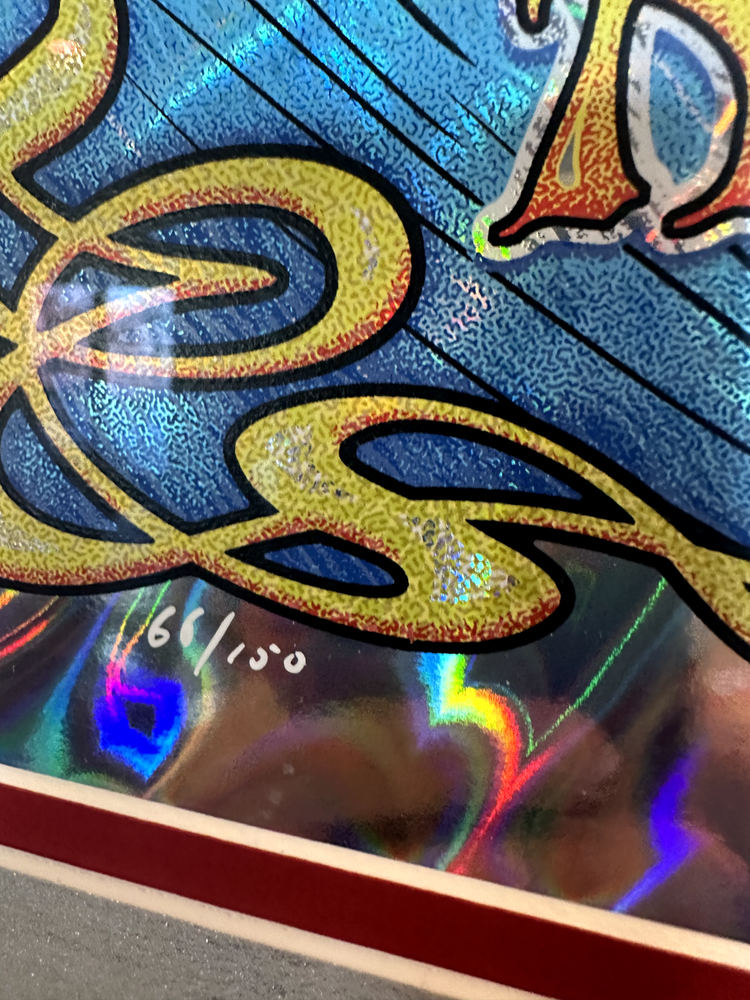 Capture a piece of music history with the 32" X 26" Framed Dead & Company Foil Concert Poster from their performance at the Shoreline Amphitheatre, in Mountain View, CA on July 30, 2016. Very Rare numbered poster # 66 of 150. Poster artist is Dave Hunter. Poster signed by artist. Excellent condition. Celebrate the iconic Grateful Dead spin-off with this original piece, a must-have for any collector or fan of the rock and pop genre. Expertly crafted in the United States, this poster is not just a visual memento but a tribute to the enduring legacy of the band. It's a standout addition to any music memorabilia collection, bringing a touch of the Grateful Dead's spirited energy into your space. Poster description: Foil Poster; Red frame with a sheet of glass, white outer matting, red inner matting; Angel holding roses
