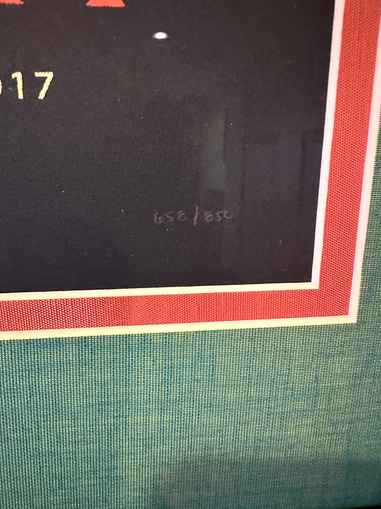 Capture a piece of music history with the 32" X 27" Framed Dead & Company Concert Poster from their performance at Frank Erwin Center, in Austin, TX on December 2, 2017. Rare numbered poster # 658 of 850. Poster artist is Shawn Ryan. Excellent condition. Celebrate the iconic Grateful Dead spin-off with this original piece, a must-have for any collector or fan of the rock and pop genre. Expertly crafted in the United States, this poster is not just a visual memento but a tribute to the enduring legacy of the band. It's a standout addition to any music memorabilia collection, bringing a touch of the Grateful Dead's spirited energy into your space. Poster description: Black frame with a sheet of glass, turquoise outer matting, red/white inner matting; Skeleton playing guitar with Austin skyline and turtles and bears dancing on a bridge below