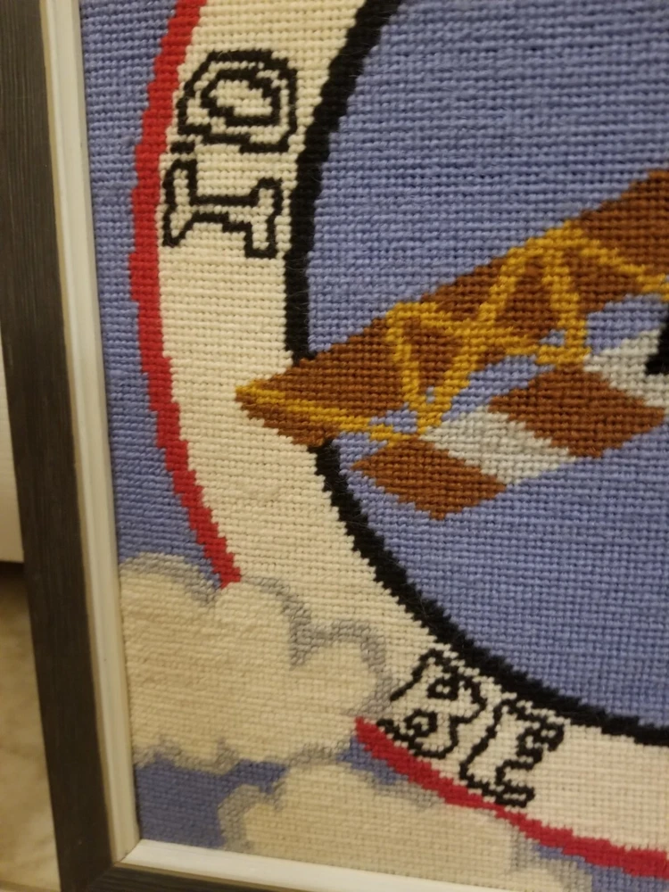 Framed 'I'd rather be flying' airplane needlepoint wall decor hand stitched...
