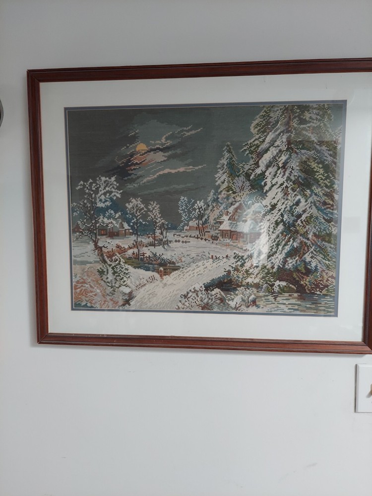 This is original Wiehler needlepoint. My mother made it in 1970s. It is framed. I am downsizing my home and will sell this piece to anyone who loves vintage needlepoint. I recall that it took my mom 6 months to complete this work. Framed size is 24"x 30" (61cm x 76cm).