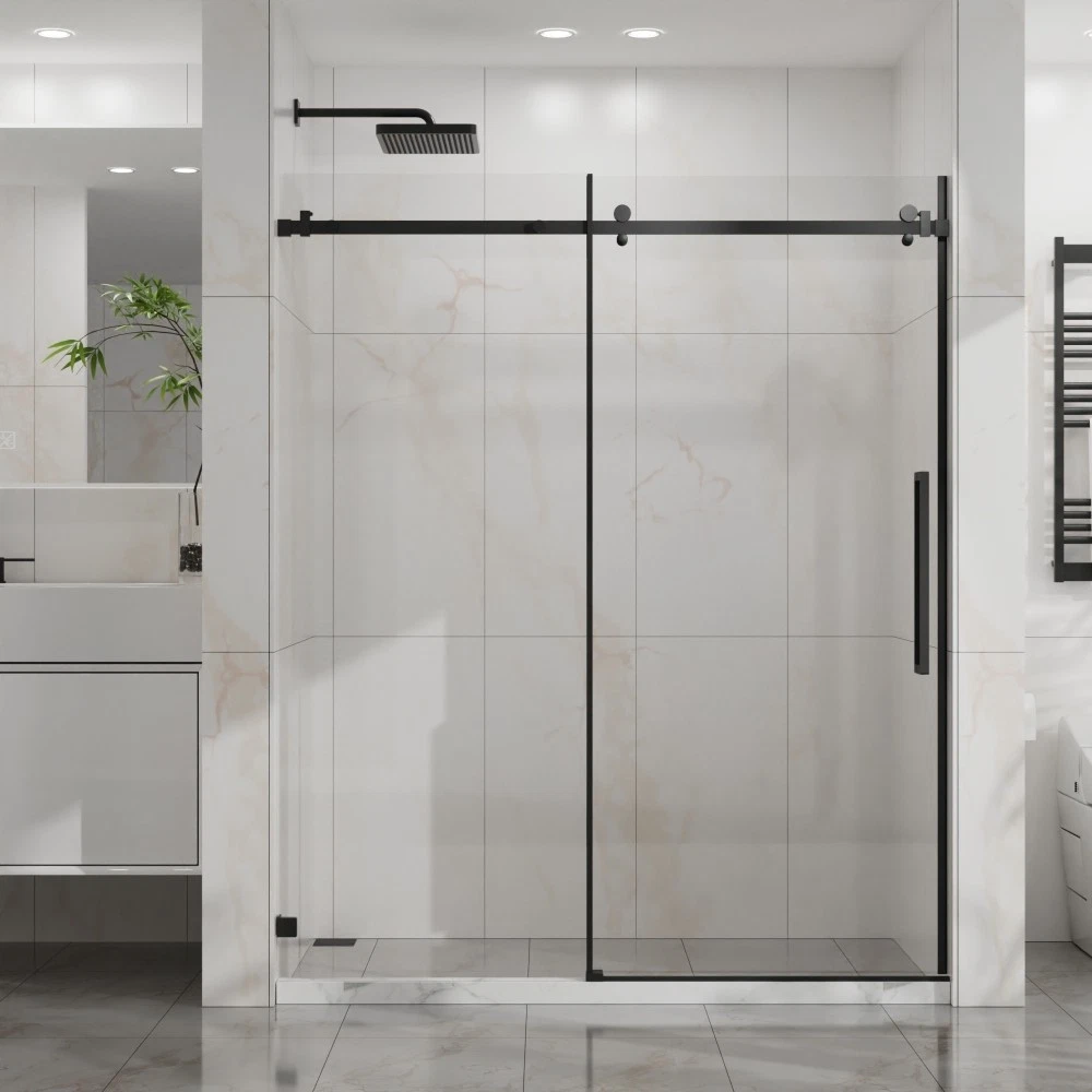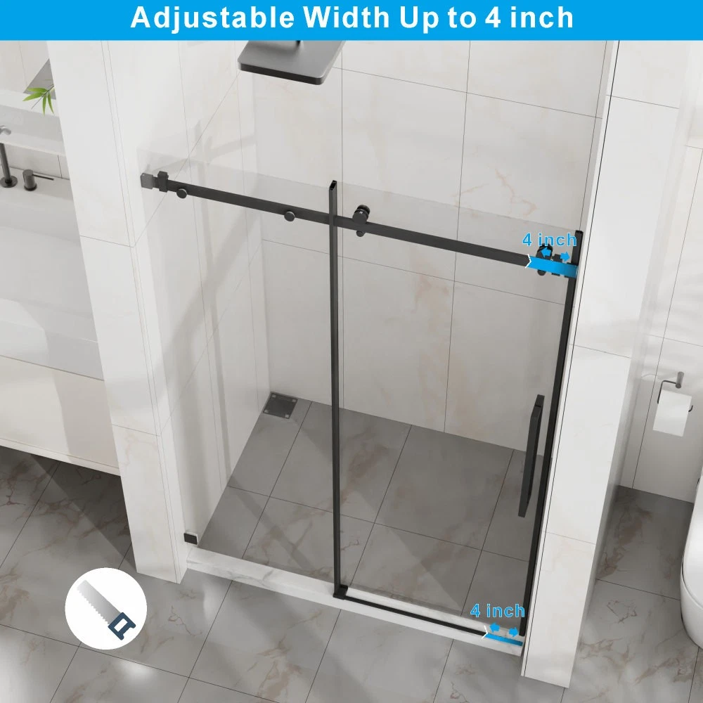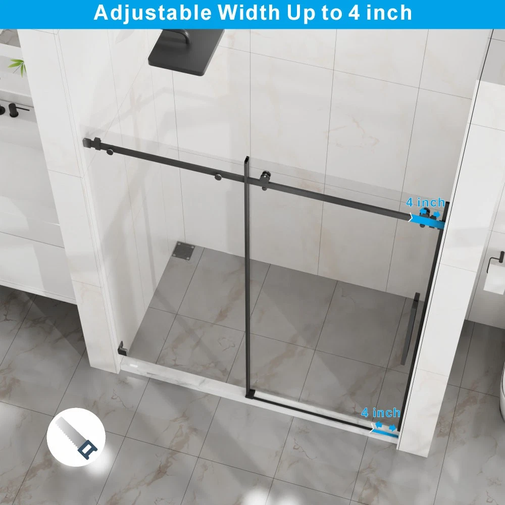 Key Specifications Dimensions : 60"W x 72"H (Adjustable Width: 56"-60"; cut top/bottom tracks for a custom fit) Glass Thickness : 1/4" (6mm) SGCC Clear Tempered Glass with Easy-Clean Coating Hardware Material : Premium Stainless Steel with Matte Black Finish Product Weight : 95.92 lbs Assembly : Reversible left/right sliding design for flexible installation Premium Features ✅ Adjustable & Versatile Design : With an adjustable width range of 56" to 60", this shower door fits most standard bathroom layouts. The reversible sliding mechanism allows you to install the door to open left or right, adapting to your bathroom’s unique configuration. The matte black finish adds a modern, timeless touch that complements any contemporary decor. ✅ Superior Safety & Durability : Made from 1/4" (6mm) SGCC-certified clear tempered glass, this door offers exceptional strength and shatter resistance. Equipped with an explosion-proof coating, it prevents glass shards from scattering if broken, ensuring maximum safety for you and your family. The easy-clean coating repels water spots, soap scum, and grime, keeping the glass crystal clear with minimal maintenance. ✅ Advanced Waterproof Performance : Features professional splash-proof technology and high-quality waterproof seal strips, effectively preventing water from leaking out of the shower enclosure onto your bathroom floor. Keep your bathroom clean, dry, and elegant all year round, reducing the hassle of post-shower mopping. ✅ Smooth & Quiet Sliding : Built with corrosion-resistant stainless steel rollers and a sturdy steel frame, the door glides smoothly and quietly with every use. The premium hardware ensures long-lasting durability, even in humid bathroom environments, maintaining peak performance for years to come. ✅ Secure Packaging & Easy Installation : Shipped in heavy-duty honeycomb cardboard with corner protectors and cushion padding, ensuring the door arrives undamaged. All necessary hardware and a detailed step-by-step instruction manual are included, making DIY installation a breeze—no professional plumber required. Warranty & Return Policy We stand behind the quality of our products. Enjoy 1-Year Manufacturer Warranty against defects in materials and craftsmanship. If you’re not completely satisfied, take advantage of our 30-Day Free Return & Exchange Policy —no questions asked. Shop with confidence knowing your investment is protected. Packaging Details Packaging Dimensions: 76.37"L x 34.25"W x 3.74"H | Packaging Weight: 116.16 lbs Transform your bathroom into a spa-like retreat with this high-performance frameless sliding shower door. Order now and experience the perfect combination of style, safety, and convenience!