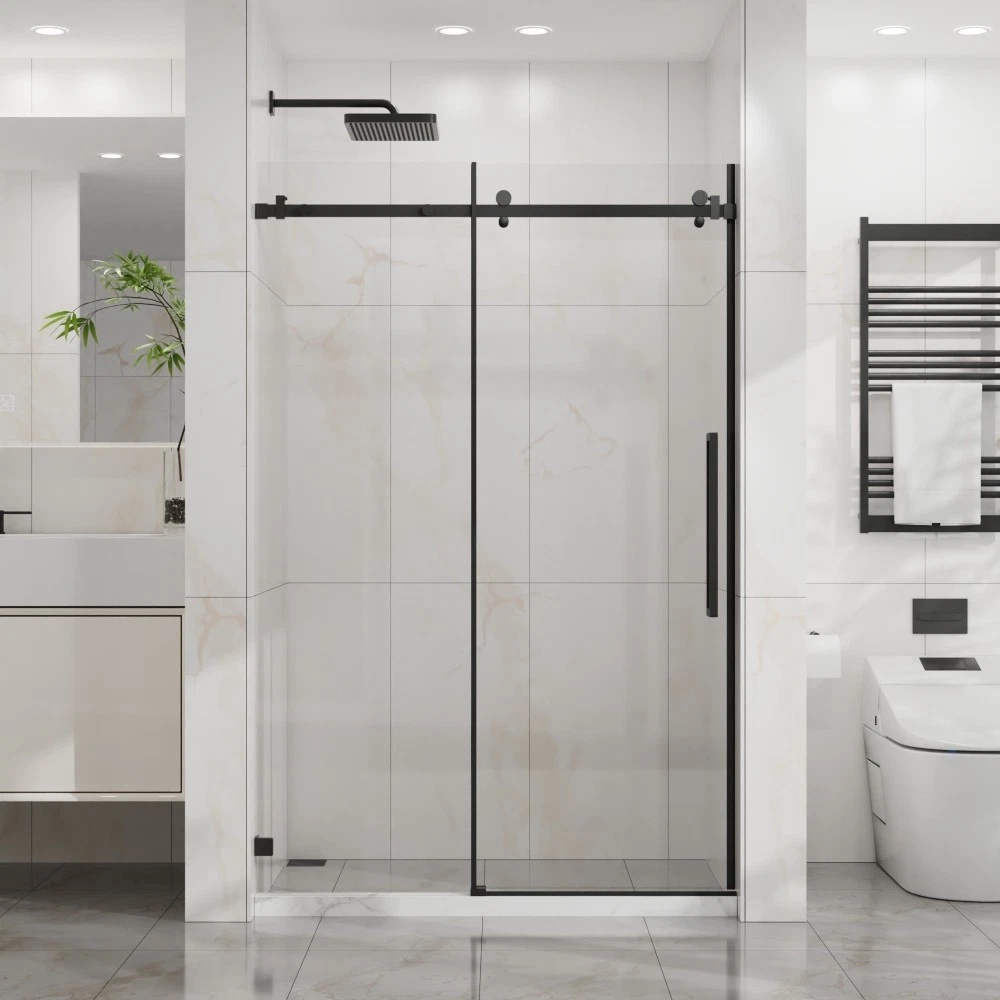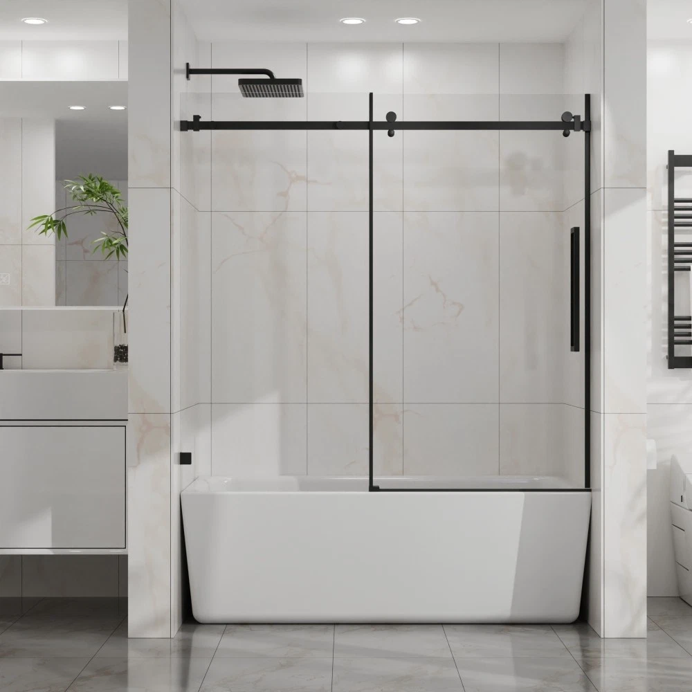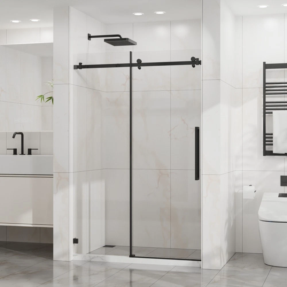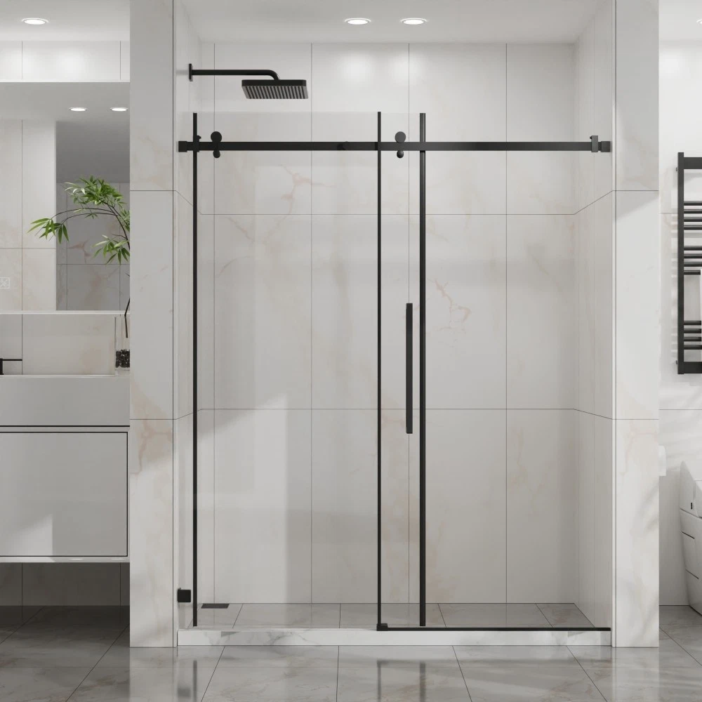 Key Specifications Dimensions : 60"W x 72"H (Adjustable Width: 56"-60"; cut top/bottom tracks for a custom fit) Glass Thickness : 1/4" (6mm) SGCC Clear Tempered Glass with Easy-Clean Coating Hardware Material : Premium Stainless Steel with Matte Black Finish Product Weight : 95.92 lbs Assembly : Reversible left/right sliding design for flexible installation Premium Features ✅ Adjustable & Versatile Design : With an adjustable width range of 56" to 60", this shower door fits most standard bathroom layouts. The reversible sliding mechanism allows you to install the door to open left or right, adapting to your bathroom’s unique configuration. The matte black finish adds a modern, timeless touch that complements any contemporary decor. ✅ Superior Safety & Durability : Made from 1/4" (6mm) SGCC-certified clear tempered glass, this door offers exceptional strength and shatter resistance. Equipped with an explosion-proof coating, it prevents glass shards from scattering if broken, ensuring maximum safety for you and your family. The easy-clean coating repels water spots, soap scum, and grime, keeping the glass crystal clear with minimal maintenance. ✅ Advanced Waterproof Performance : Features professional splash-proof technology and high-quality waterproof seal strips, effectively preventing water from leaking out of the shower enclosure onto your bathroom floor. Keep your bathroom clean, dry, and elegant all year round, reducing the hassle of post-shower mopping. ✅ Smooth & Quiet Sliding : Built with corrosion-resistant stainless steel rollers and a sturdy steel frame, the door glides smoothly and quietly with every use. The premium hardware ensures long-lasting durability, even in humid bathroom environments, maintaining peak performance for years to come. ✅ Secure Packaging & Easy Installation : Shipped in heavy-duty honeycomb cardboard with corner protectors and cushion padding, ensuring the door arrives undamaged. All necessary hardware and a detailed step-by-step instruction manual are included, making DIY installation a breeze—no professional plumber required. Warranty & Return Policy We stand behind the quality of our products. Enjoy 1-Year Manufacturer Warranty against defects in materials and craftsmanship. If you’re not completely satisfied, take advantage of our 30-Day Free Return & Exchange Policy —no questions asked. Shop with confidence knowing your investment is protected. Packaging Details Packaging Dimensions: 76.37"L x 34.25"W x 3.74"H | Packaging Weight: 116.16 lbs Transform your bathroom into a spa-like retreat with this high-performance frameless sliding shower door. Order now and experience the perfect combination of style, safety, and convenience!