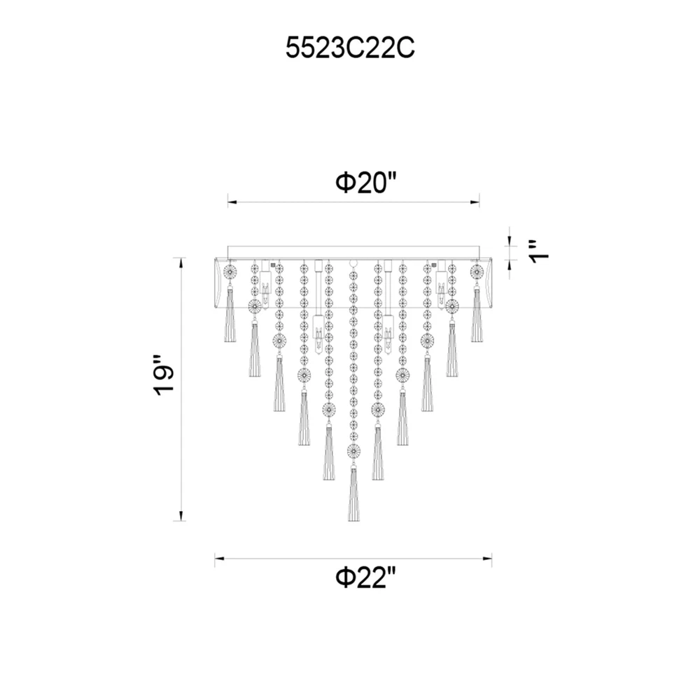 A light fixture and a décor statement in one. The Franca 8 Light Flush Mount displays its brilliance when turned on, and even when turned off. Hanging from a 22 inch circular shade, in black or off white, are tiered pieces of conical glass tubes and clear crystal strands. Light is emitted by eight bulbs and reflected beautifully by the crystal drops. Lighting is jewelry for the home, and there is the perfect piece for every room. This fixture is done in a beautiful chrome finish which could be the missing piece to lighten up and fall in love with your space all over again.Feel confident with your purchase and rest assured. This fixture comes with a one year warranty against manufacturers defects to give you peace of mind that your product will be in perfect condition.Dimensions: H 19" x W Free Shipping Over $49.99* Details Franca 8 Light Drum Shade Flush Mount With Chrome Finish Product Description: A light fixture and a décor statement in one. The Franca 8 Light Flush Mount displays its brilliance when turned on, and even when turned off. Hanging from a 22 inch circular shade, in black or off white, are tiered pieces of conical glass tubes and clear crystal strands. Light is emitted by eight bulbs and reflected beautifully by the crystal drops. Lighting is jewelry for the home, and there is the perfect piece for every room. This fixture is done in a beautiful chrome finish which could be the missing piece to lighten up and fall in love with your space all over again. Feel confident with your purchase and rest assured. This fixture comes with a one year warranty against manufacturers defects to give you peace of mind that your product will be in perfect condition. DimensionsH 19" x W 22" x L 22" Chrome Finish - G9 Bulb Not Included - Indoor (Dry Location) cETLus Approved Includes Assembly Instructions and Hardware Compatible With Standard Low Voltage Dimmer Comes With 6" of wire