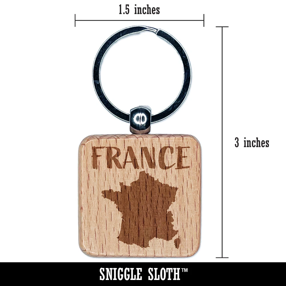 France Country Solid with Text Engraved Wood Square Keychain Tag Charm