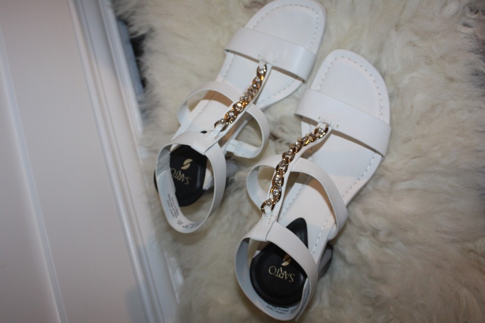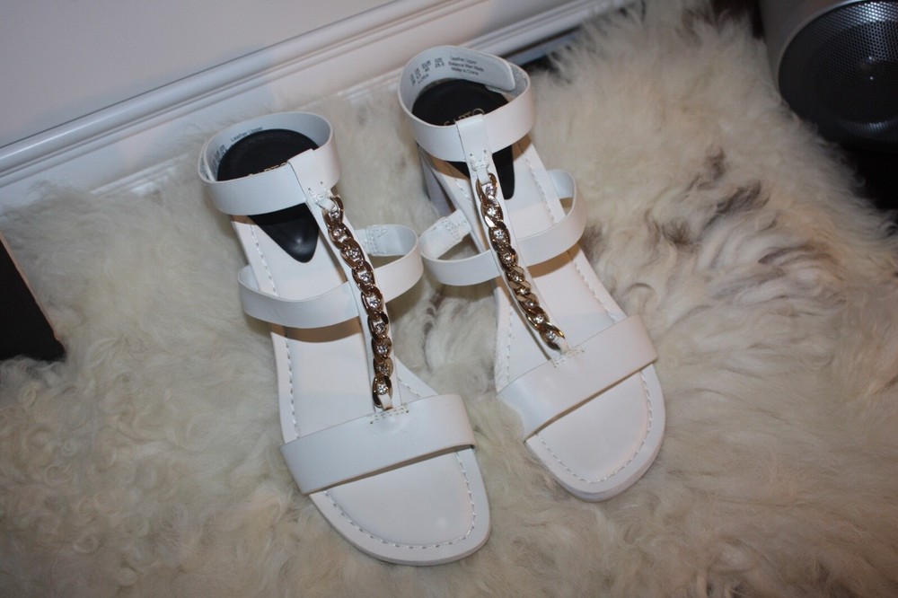 NEVER WORN - New without Box Franco Sarto Oria White Leather Ankle Strap Heels in Size 9 Leather Upper - white with black detail on heel and gold chain. Great Condition