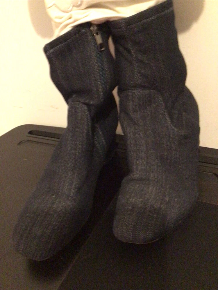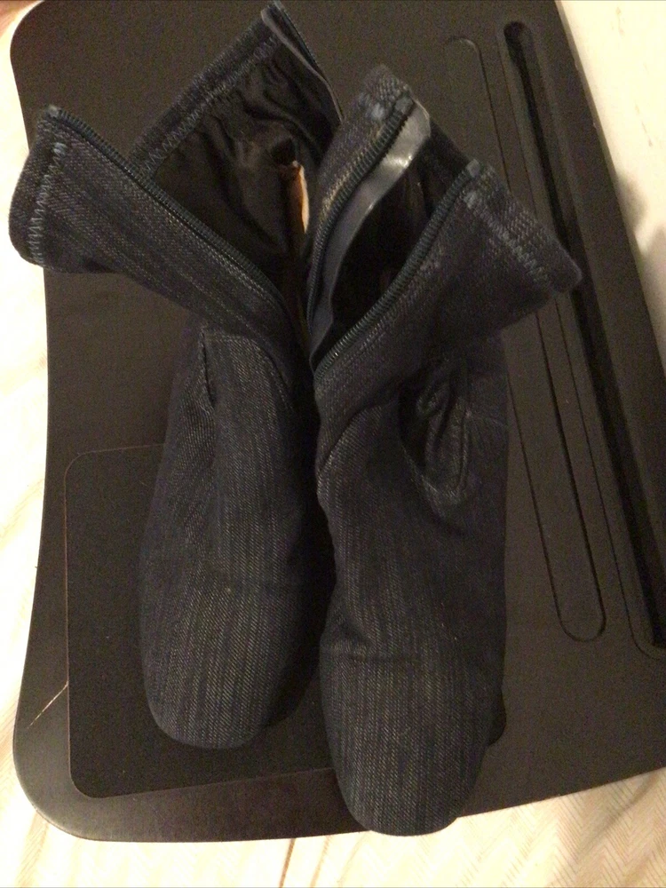 Elevate your shoe game with these Franco Sarto Denim Booties in Midnight Blue. The ankle booties feature a round toe shape and slip-on closure, making them perfect for any occasion from travel to workwear. The boots are made of high-quality denim fabric and lined with comfortable fabric, providing cushioned and non-slip support. The rubber outsole ensures durability and the block heel style adds a touch of elegance. These vintage-inspired booties are perfect for any fashion-forward woman and can be customized to suit any style.