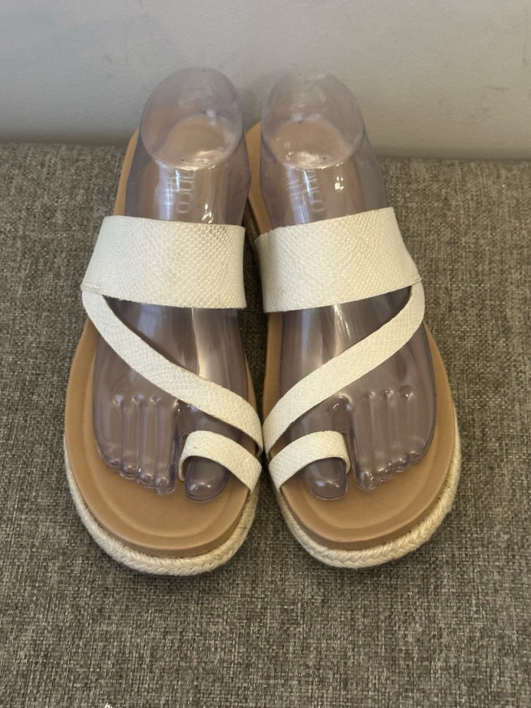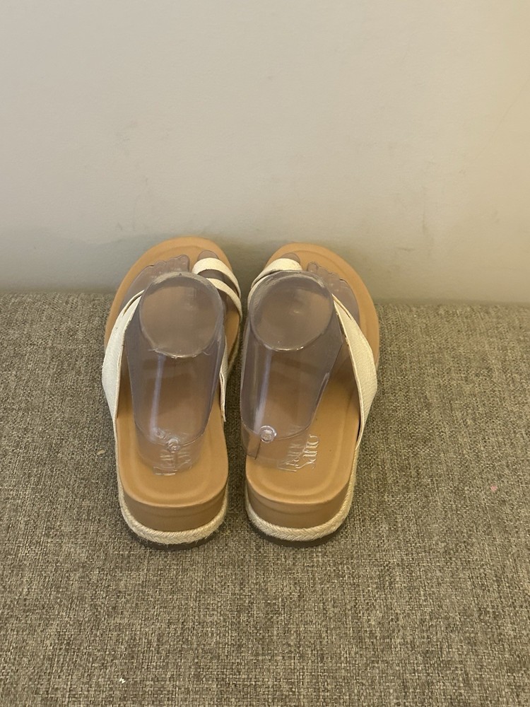Type: Sandal EU Shoe Size: 40 Brand: Franco US Shoe Size: 10 Accents: Logo Heel Height: Flat (Under 1 in) Character: Angel Style: Strappy UK Shoe Size: 8 Heel Style: Flat Model: Open Toe Upper Material: Leather Vintage: No Department: Women Color: White AU Shoe Size: 10 Customized: No Country of Origin: Italy Pattern: Solid Features: Comfort Closure: Slip On