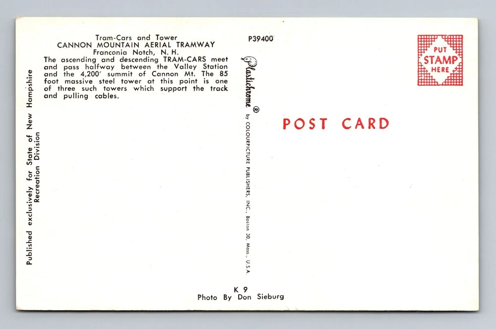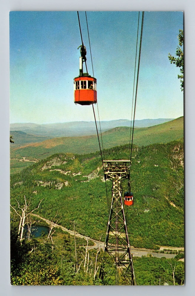 Franconia Notch NH-New Hampshire, Tram Cars and Tower, Antique Vintage Postcard