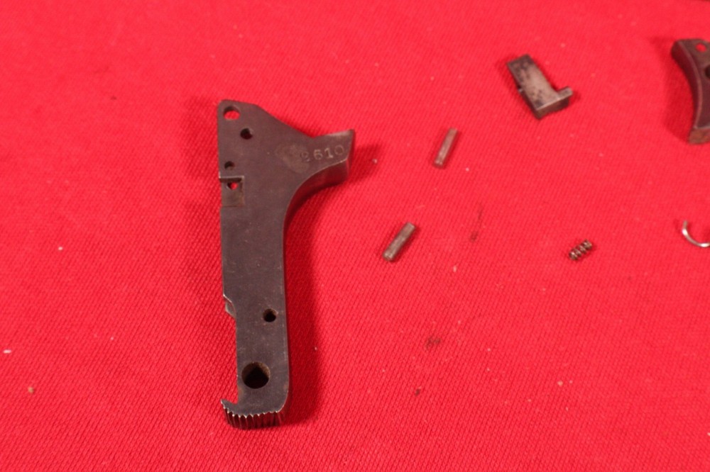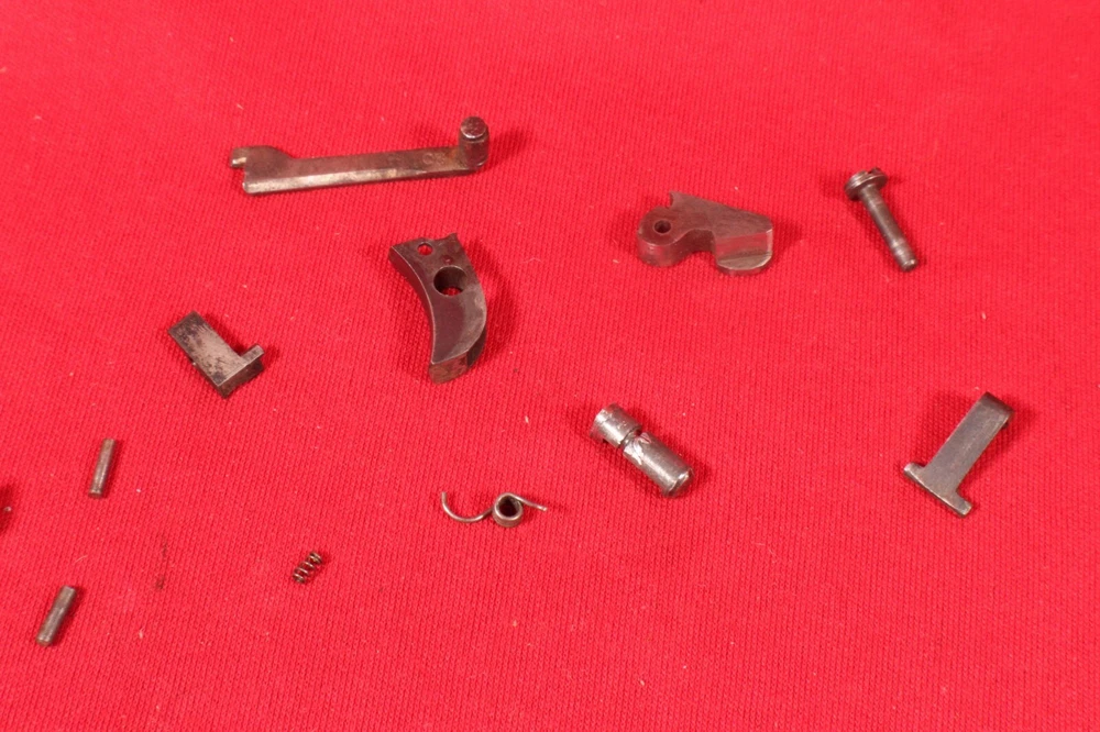 Francotte model E of Belgium small parts, pins, springs, back strap, trigger, hammer, screw (everything pictured). Unobtanium