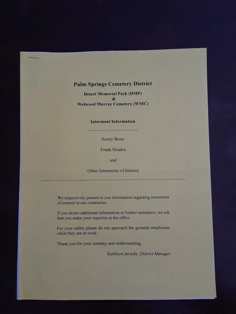 As shown...3 sheets that have been folded...I picked this up when I visited the cemetery 4-5 years ago....nice tranquil spot, Frank's stone is worn out from people touching it.....