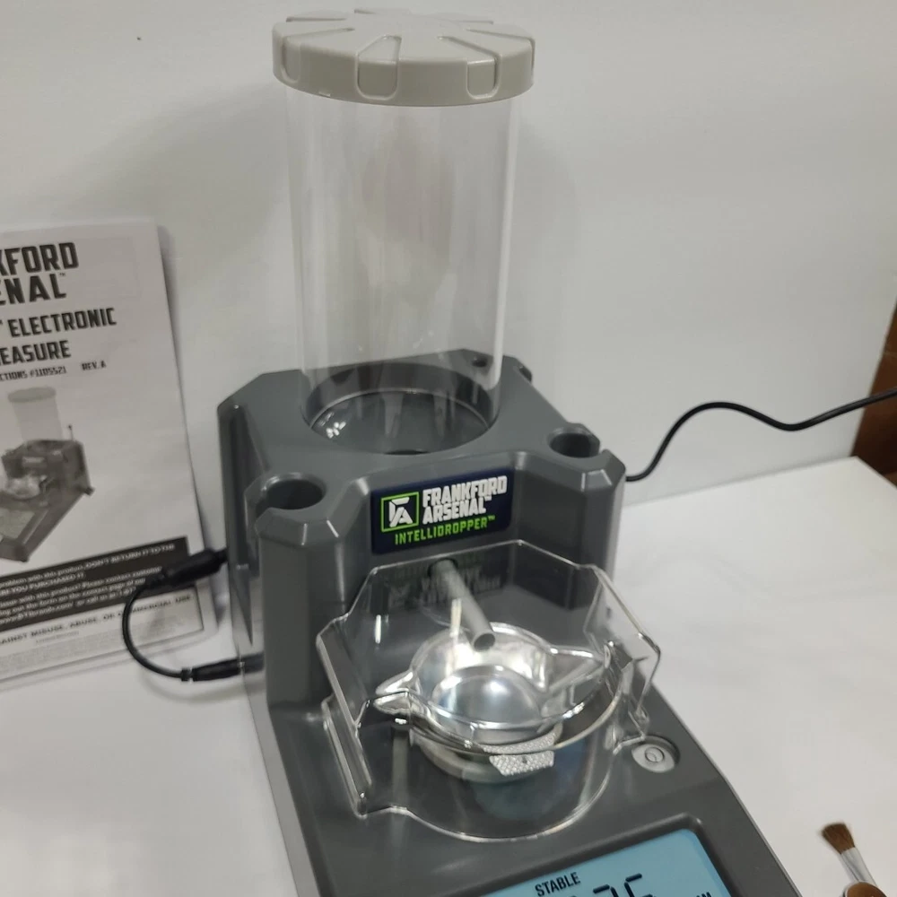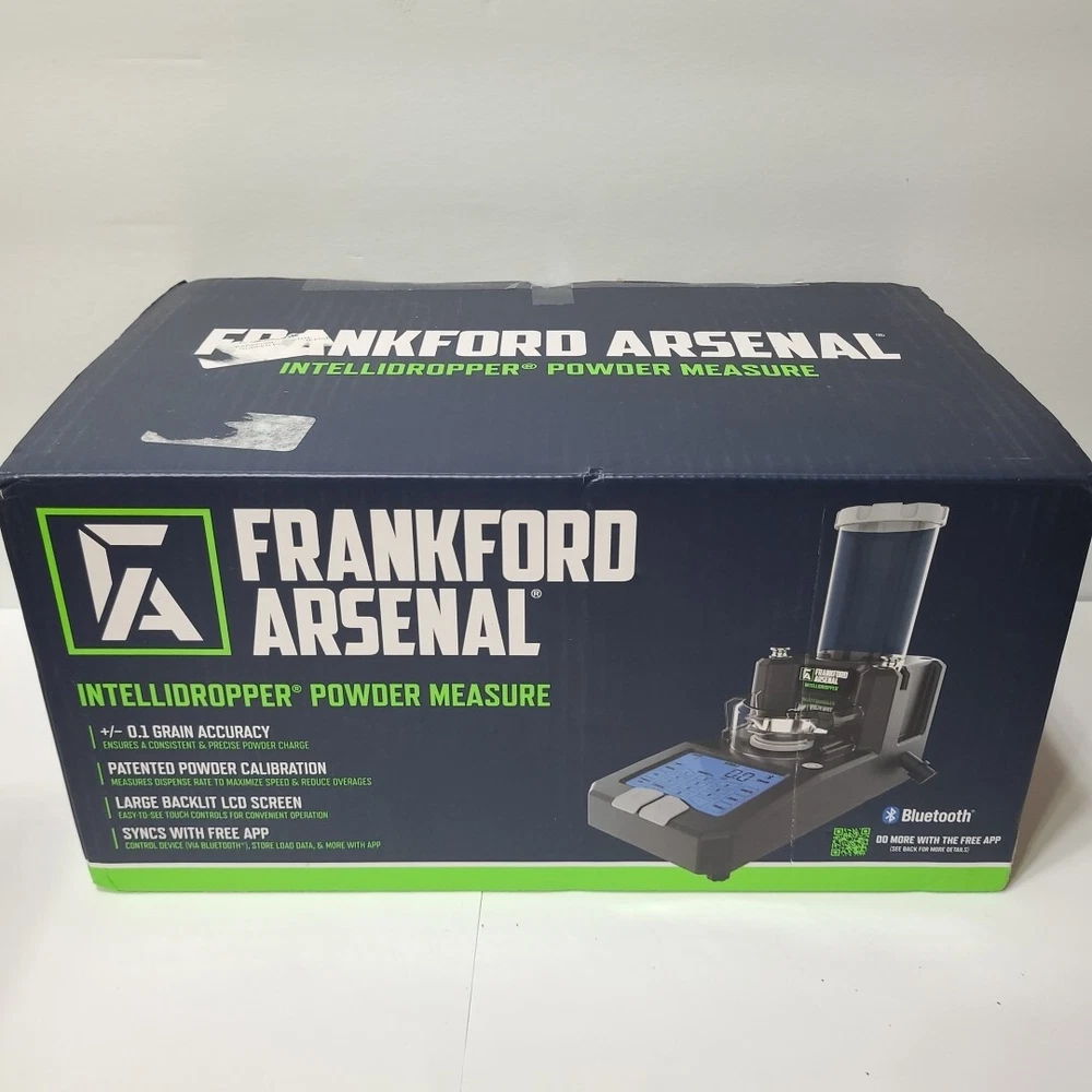 Works great. This Frankford Arsenal powder measure is the perfect addition to any reloading setup. The Intelli-Dropper feature allows for easy and precise measurement of black powder, while the Bluetooth app provides convenient access to all your reloading needs. This measure is designed for use with black powder and is perfect for hunters and reloading enthusiasts. The brand is well-known for its high-quality products and this powder measure is no exception. It comes in a convenient open box, ready to use and set up.