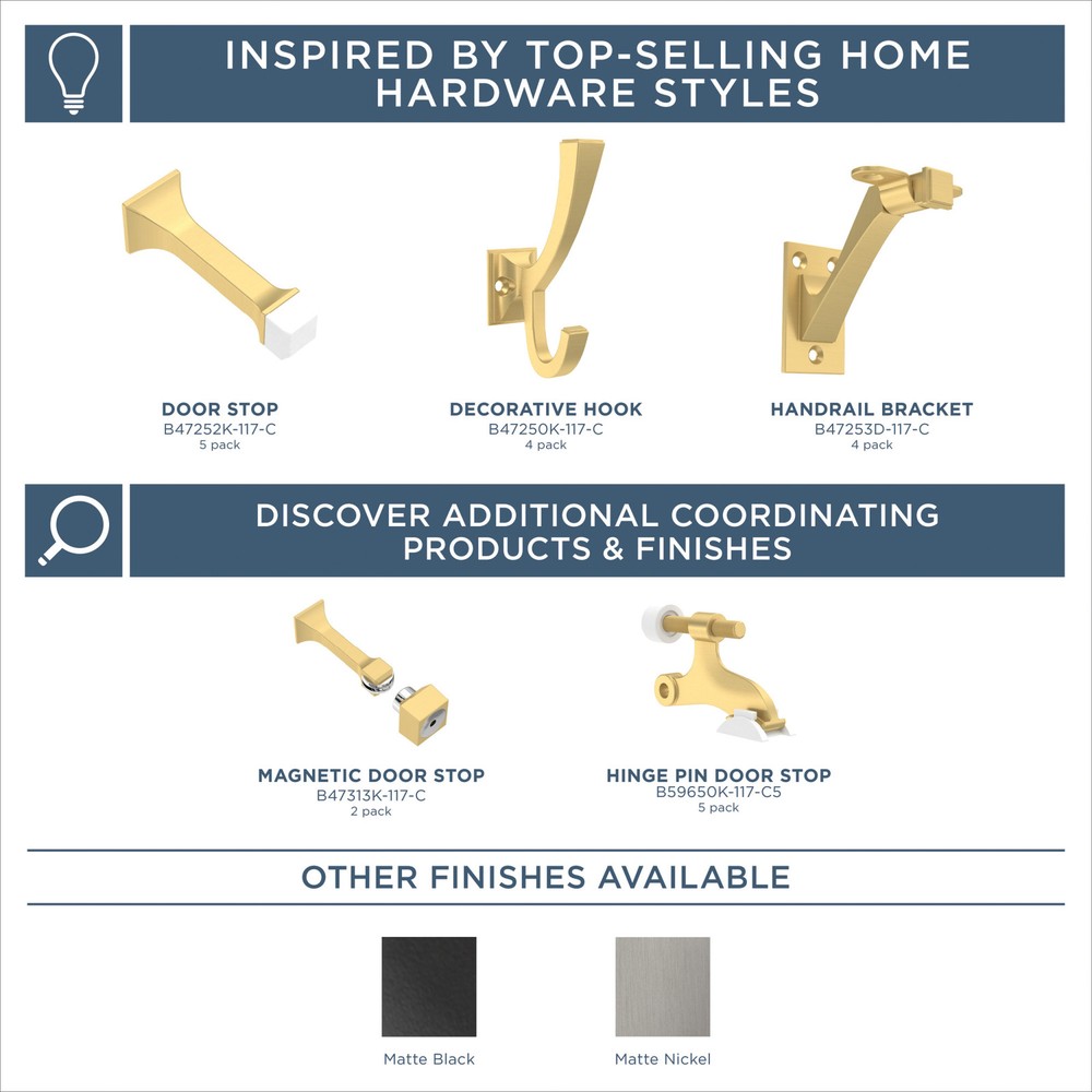 Love these stylish Franklin Brass rail brackets! The gold finish adds a beautiful decorative touch while being sturdy and functional. Perfect for upgrading indoor or outdoor stair railings—they feel high quality and install easily. The pack of four is great for a full staircase, and I love how they match other Classic Edge hardware. A simple upgrade that makes a big difference!