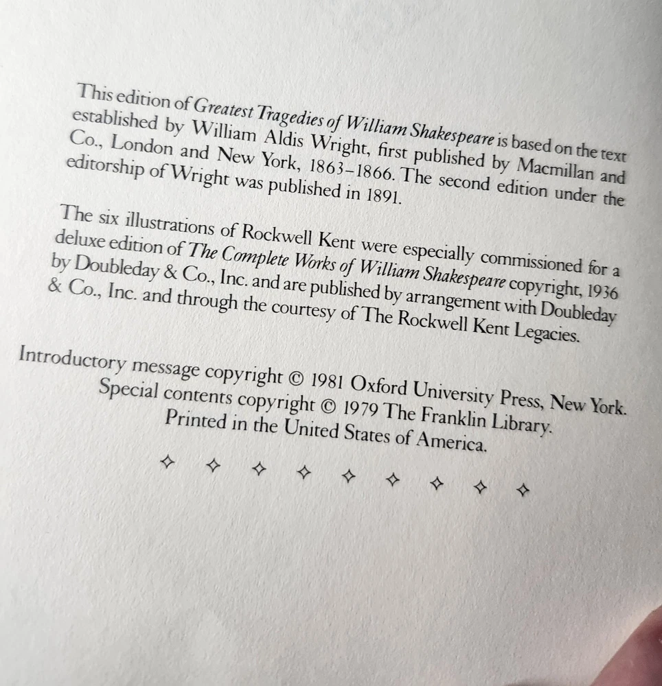 Franklin Library Oxford Great Books TRAGEDIES by William Shakespeare 1981 HC... Shipped with USPS Media Mail.