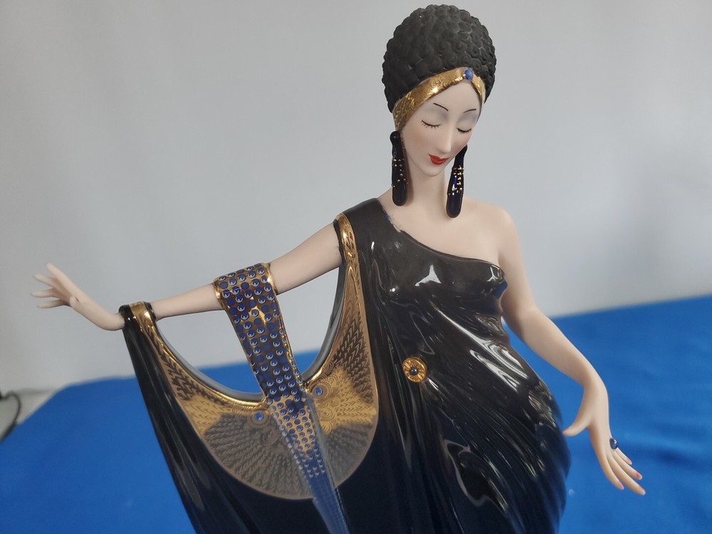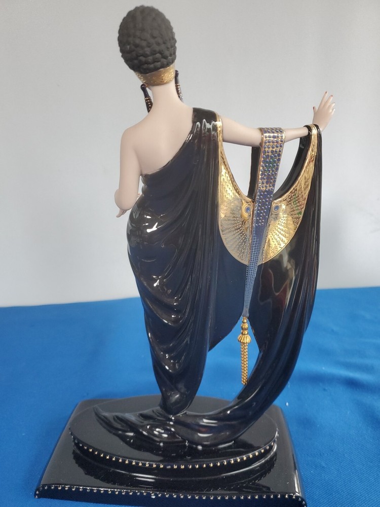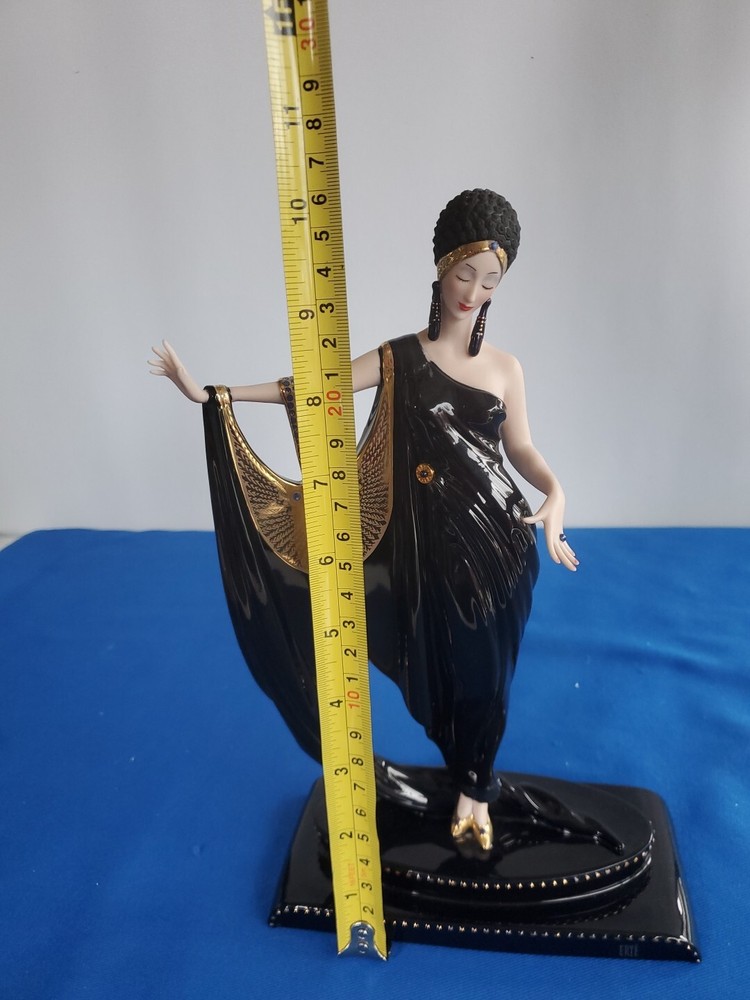 The Franklin Mint Erte Limited Edition Art Deco Glamour Porcelain Lady Figurine is a stunning sculpture created by the renowned artist Erte. This limited edition piece embodies the Art Deco style with its elegant portrayal of a woman, showcasing intricate details and fine craftsmanship. Perfect for art enthusiasts and collectors, this sculpture captures the essence of glamour and sophistication in a timeless design.