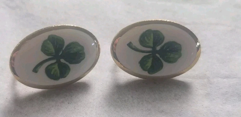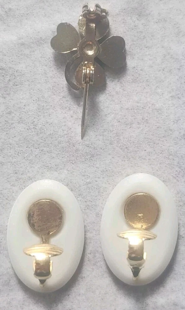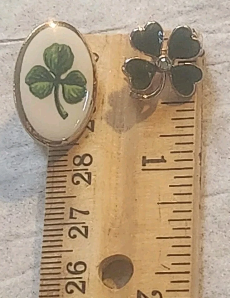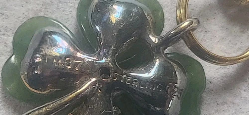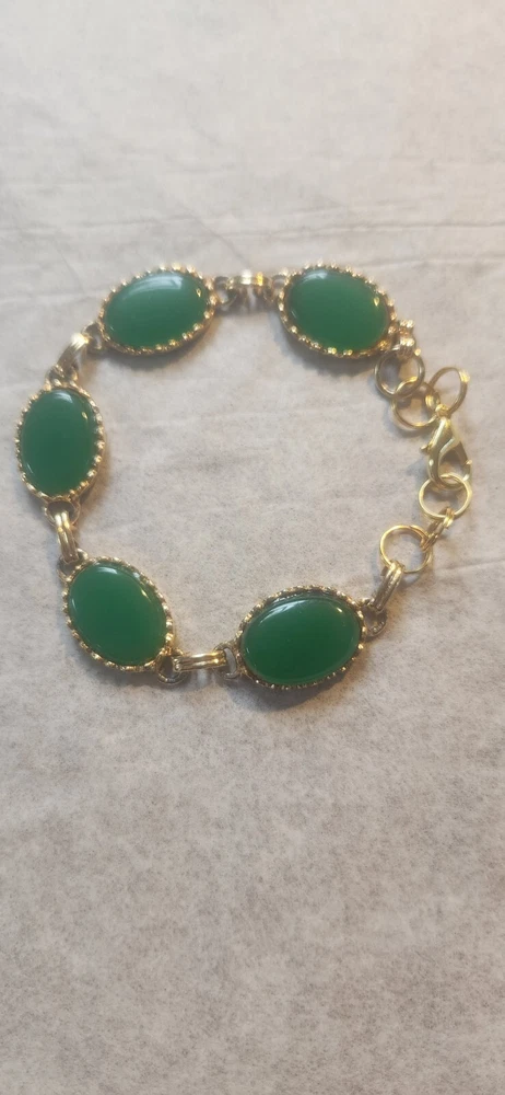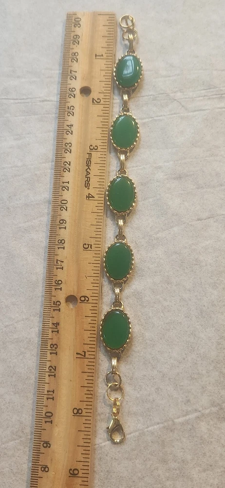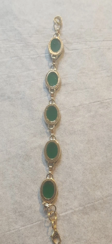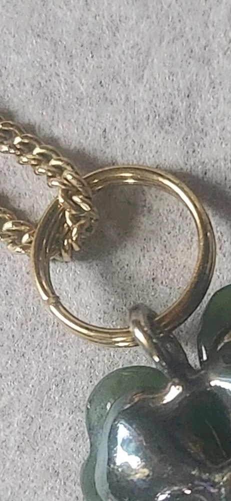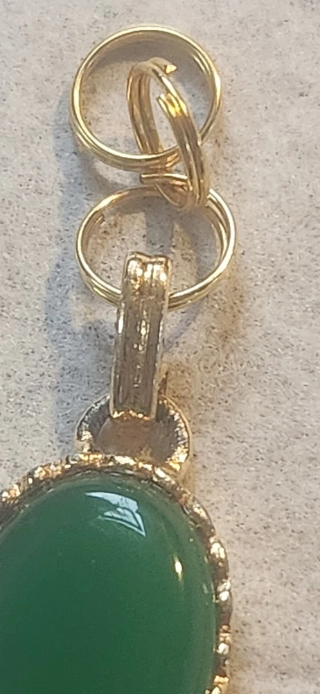 Franklin MINT GOLD FILLED CHAIN NOT ORIGINAL TO PENDENT HAS GOLD TONE JUMP RING THAT CAN BE REMOVED BEADED GREEN NECKLACE HAS A REAL 4 LEAF CLOVER HAS BEEN REPAIRED WITH SILVERTONE JUMP RING PLASTIC GREEN BRACELET HAS BEEN REPAIRED WITH GOLD TONE JUMP RINGS AND LOBSTER CLASP JEWLERY IS PHOTOGRAPHED NEXT RULER FOR MEASUREMENT