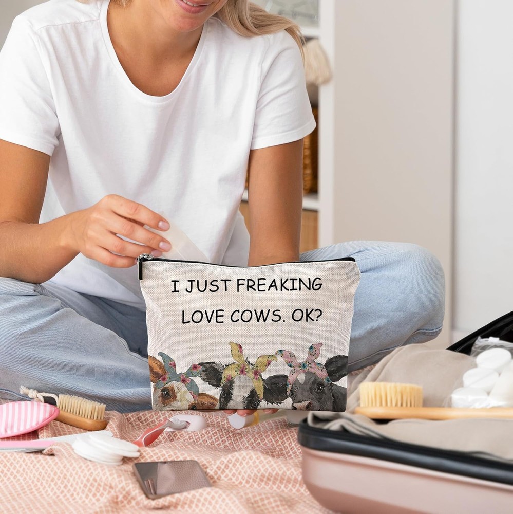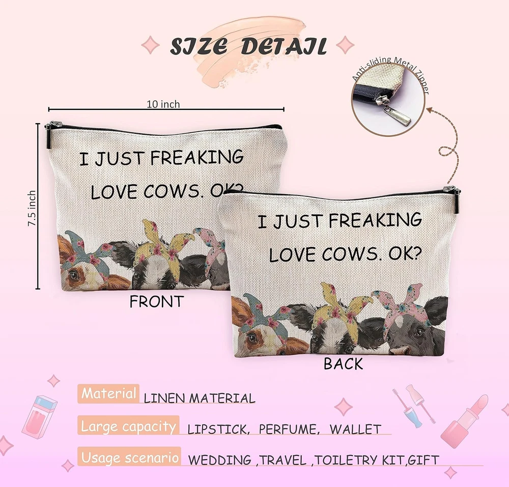 This makeup bag is absolutely adorable! The cute cow design with bandanas brings a fun farmhouse vibe, and the linen fabric feels so soft yet durable. It’s the perfect size for essentials, lightweight, and easy to clean—plus the colors stay vibrant. A must-have for cow lovers!