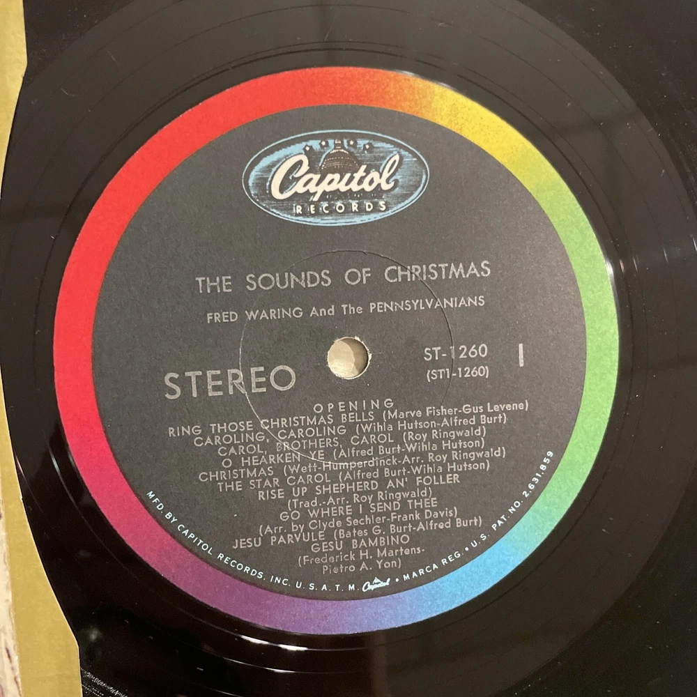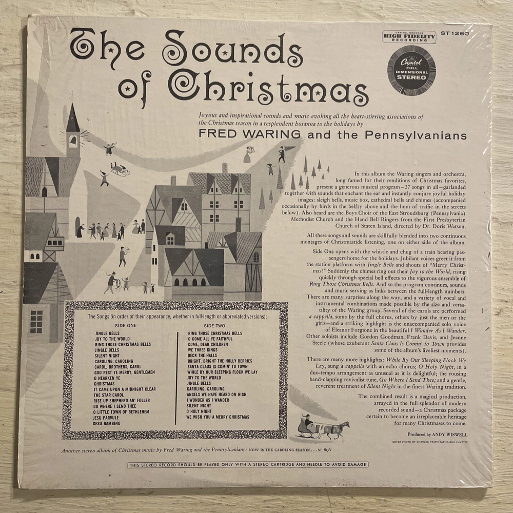 Elevate your holiday music collection with Fred Waring's "The Sounds Of Christmas" LP, a true gem from Capitol Records. This first edition, first pressing vinyl record embodies the spirit of the season with its classic 1950s and 1960s holiday tracks, all preserved in excellent (EX) condition. The cardboard sleeve protects this stereo LP, which features the original cover, inner sleeve, and is still in its shrink wrap. Celebrate your Christmas with the timeless melodies of Fred Waring, captured in the United States and presented in black vinyl. The LP, which includes a 12" record sized at 33RPM, promises a delightful auditory experience with its near mint (NM or M-) sleeve grading. Perfect for holiday occasions, this record is a must-have for enthusiasts of traditional holiday music and vinyl collectors alike.