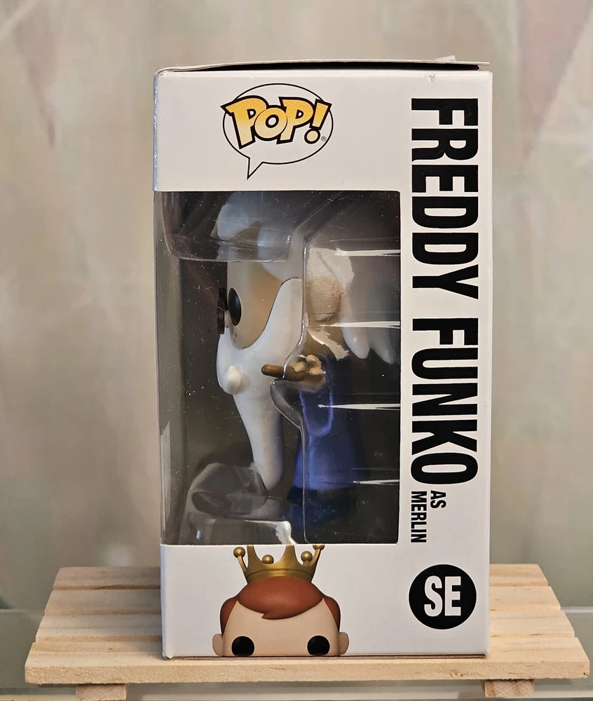 Freddy Funko as Merlin Camp Fundays 2023. Has been used as display. Please see photos for any tears/dents/scuffs on box. Thank you for looking ✌️ 💚 🕯